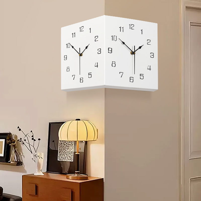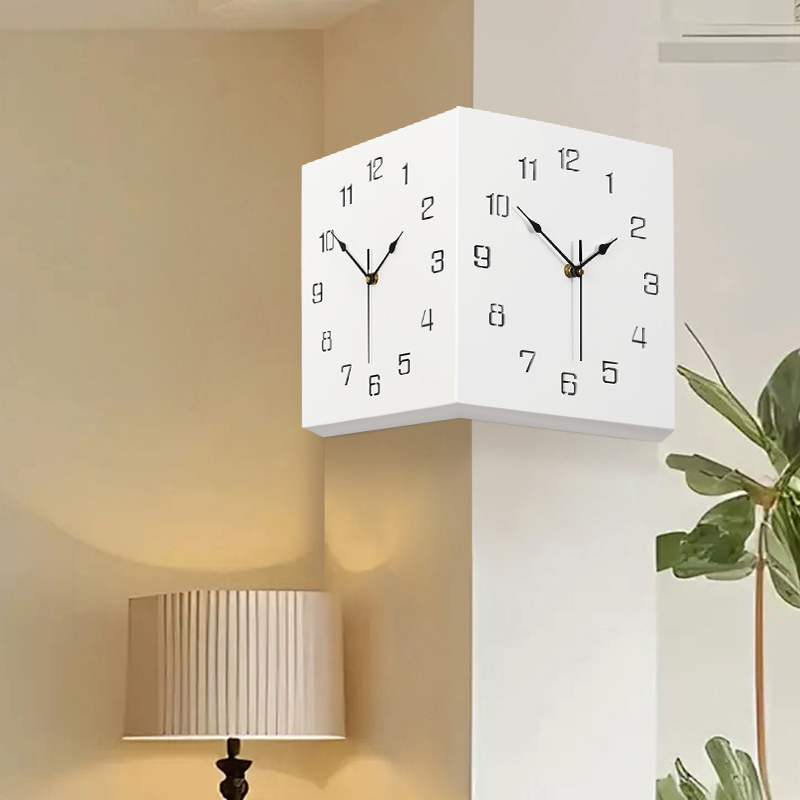 庄束2025新款双面挂钟简约现代创意家用静音拐角钟表客厅阳角时钟