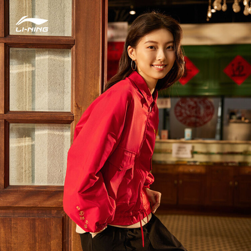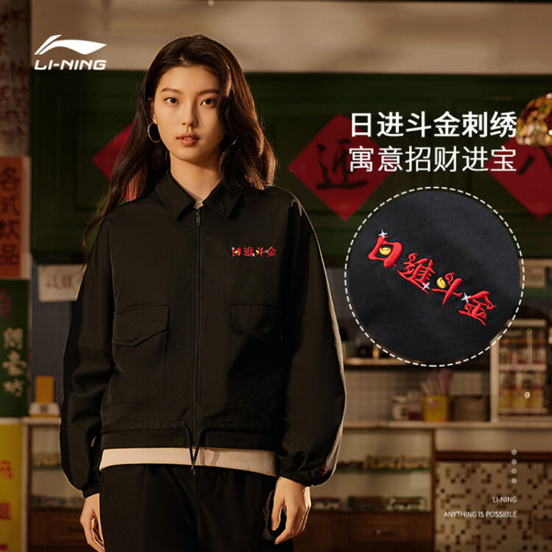 李宁女子夹克春秋新款日进斗金时尚宽松风衣透气潮流休闲运动外套