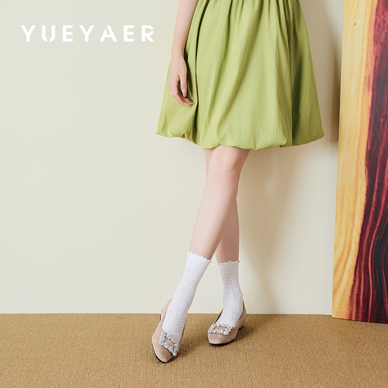 月芽儿法式单鞋2025年秋季新款女鞋绒面水钻方扣一脚蹬百搭平底鞋