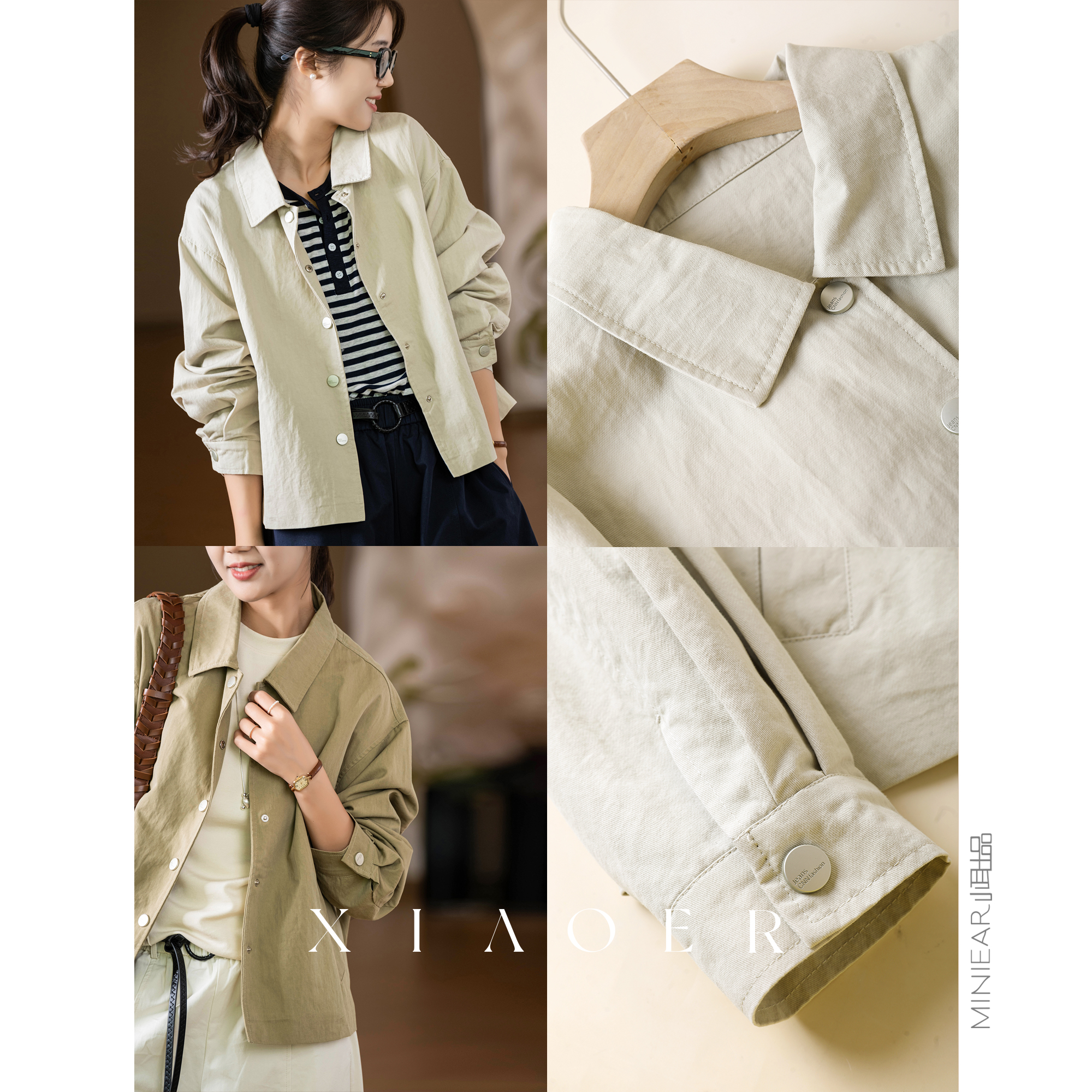 小耳出品 锦棉夹克/短阔立挺/修饰身形 时尚翻领宽松显瘦长袖外套
