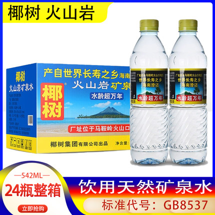 椰树火山岩矿泉水542ml*24瓶矿泉水整箱装天然饮用水海南特产