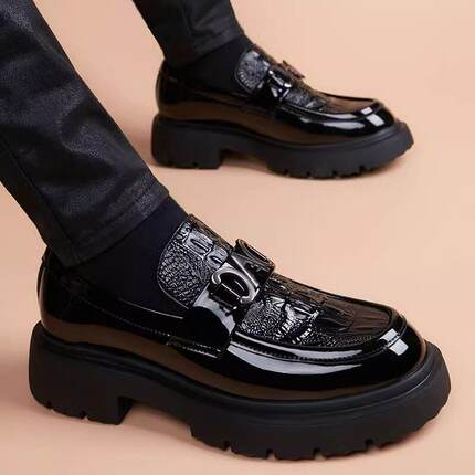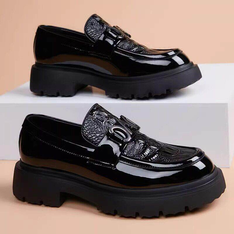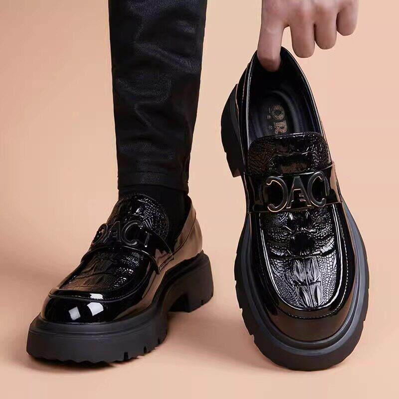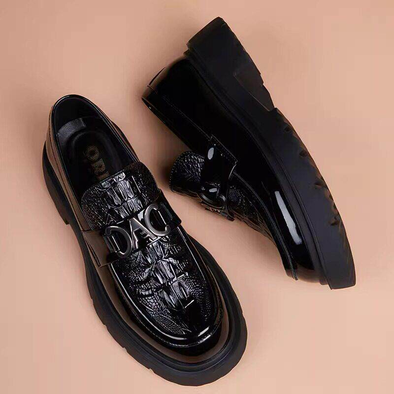 欧洲站男鞋2025新款皮鞋男一脚蹬休闲鞋软底真皮厚底增高乐福鞋男