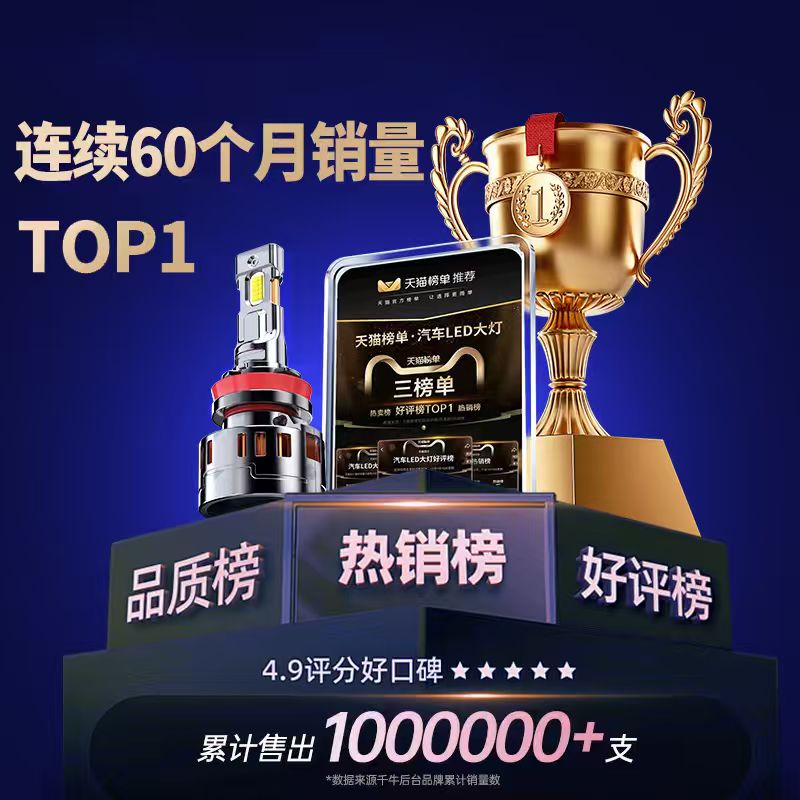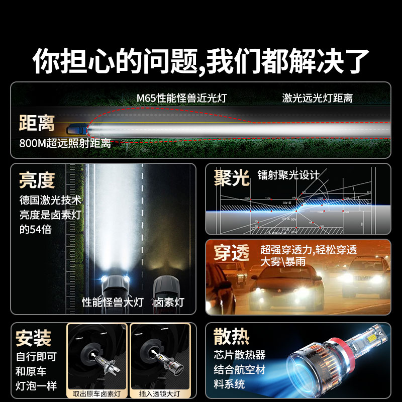 汽车激光LED大灯泡强光车灯9005超亮h4远光近光一体h7透镜改装h11