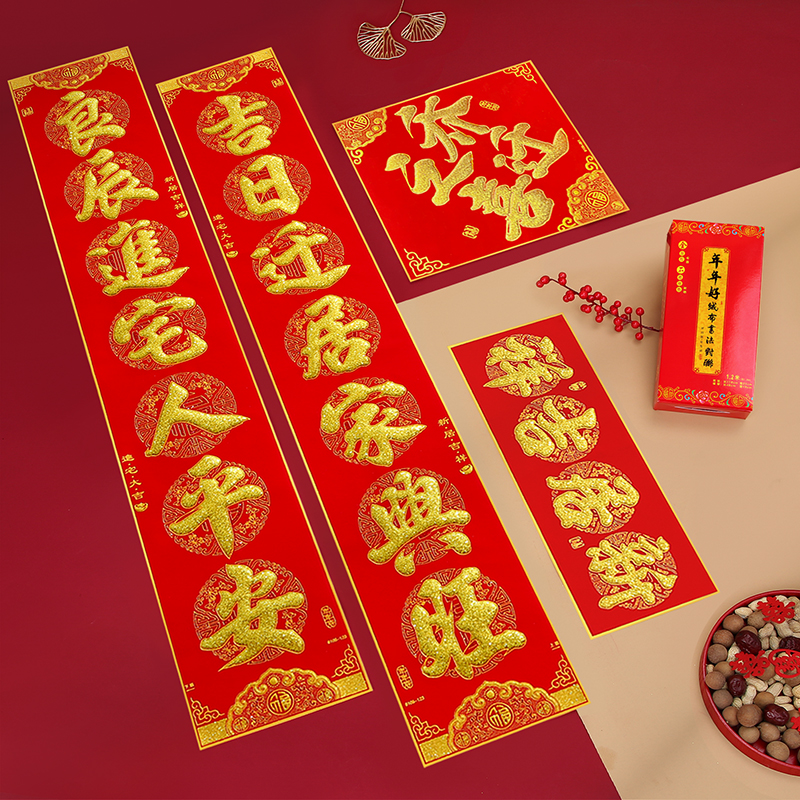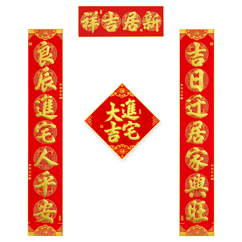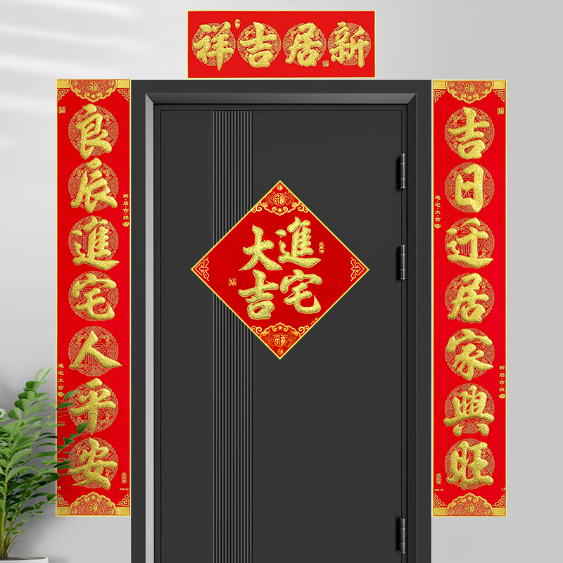 乔迁之喜对联新居搬家入户门入宅大吉高档绒布自粘福字门贴装饰品