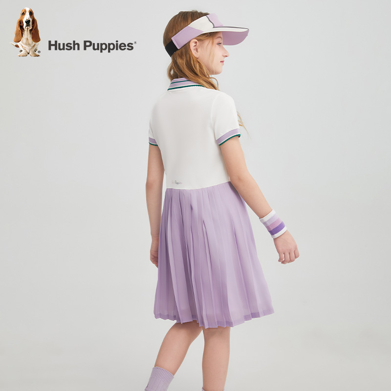 暇步士童装女童连衣裙2025夏季新款大童拼接Polo裙儿童休闲短袖裙