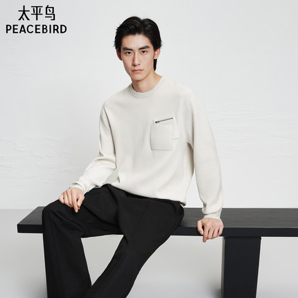 太平鸟男装 圆领休闲毛衣保暖工装针织衫套头纯色时尚口袋线衫潮