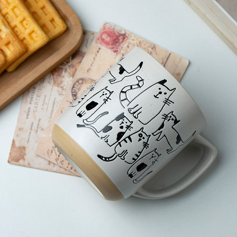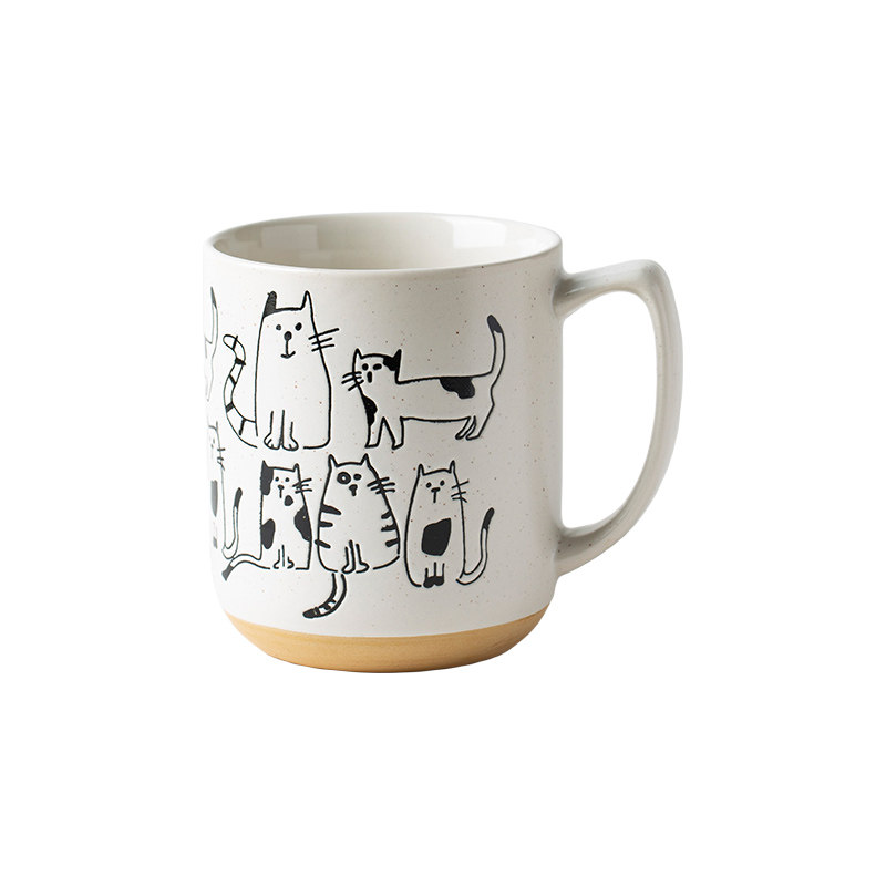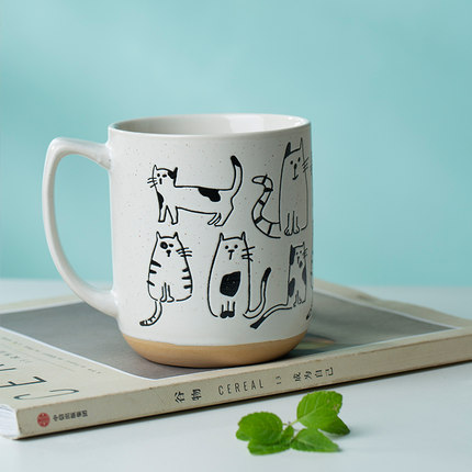 韩式长尾巴猫咪超大容量陶瓷杯创意带勺马克杯早餐杯水杯子咖啡杯