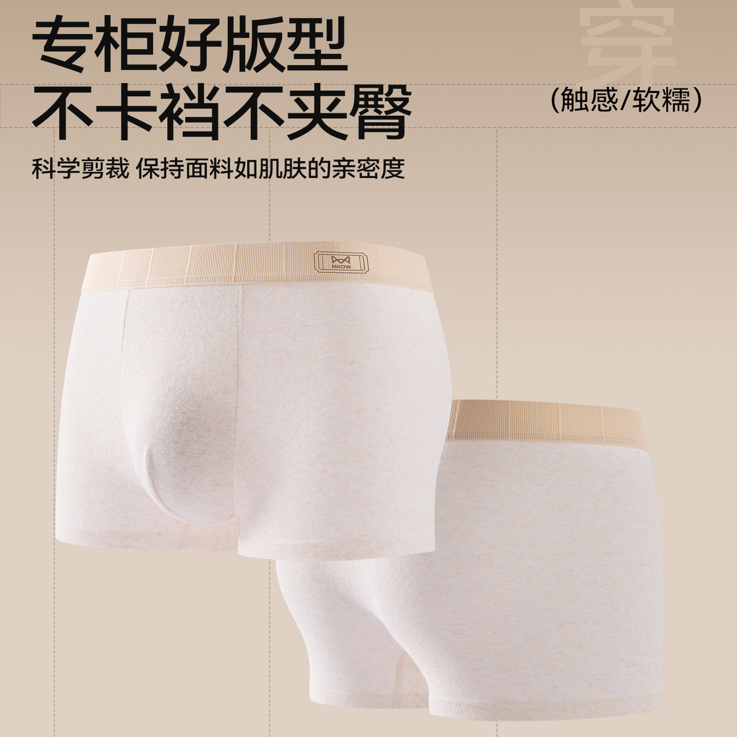 猫人男士纯棉透气平角内裤