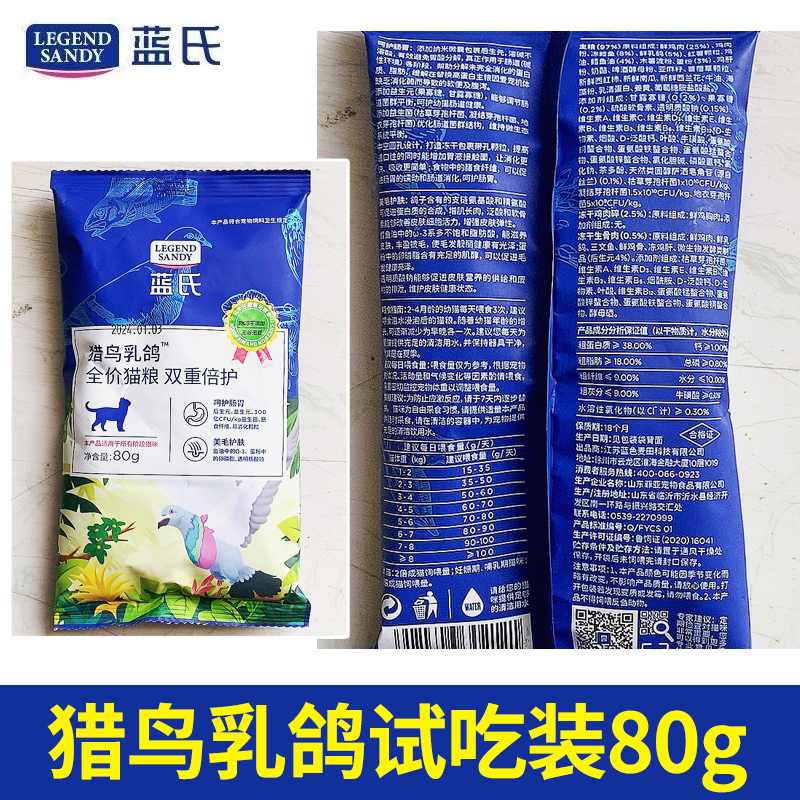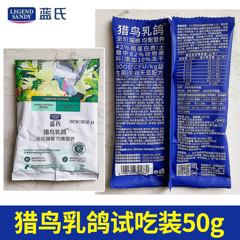 蓝氏乳鸽猫粮试吃50g*10猎鸟猎兔火鸡冻干生骨肉烘焙粮试吃装10kg