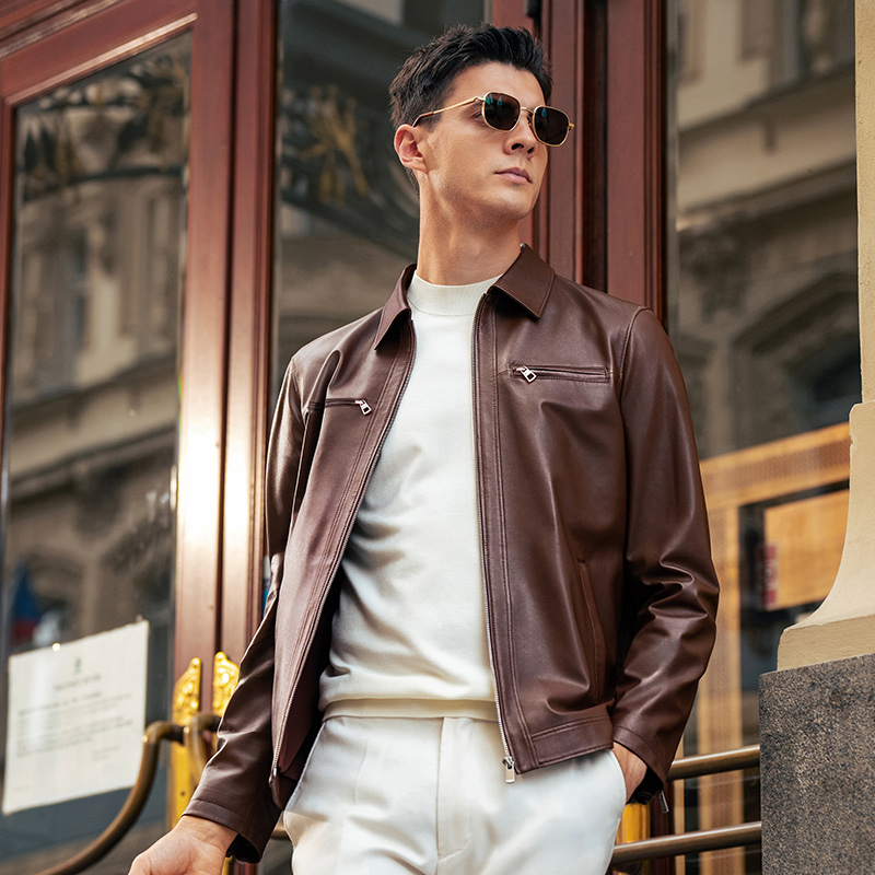 MrBu布先生机车风翻领拉链皮衣2025秋冬新款纯羊皮外套男BT16986