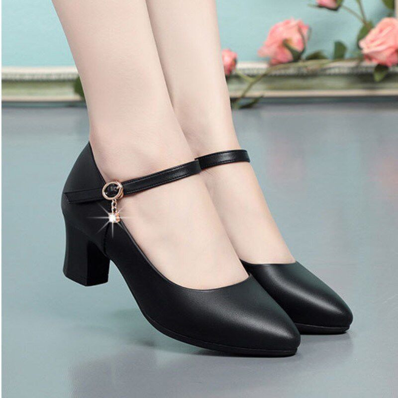 新品工作鞋女鞋黑色女士工装皮鞋高跟一字L扣跳舞鞋旗袍走秀鞋职