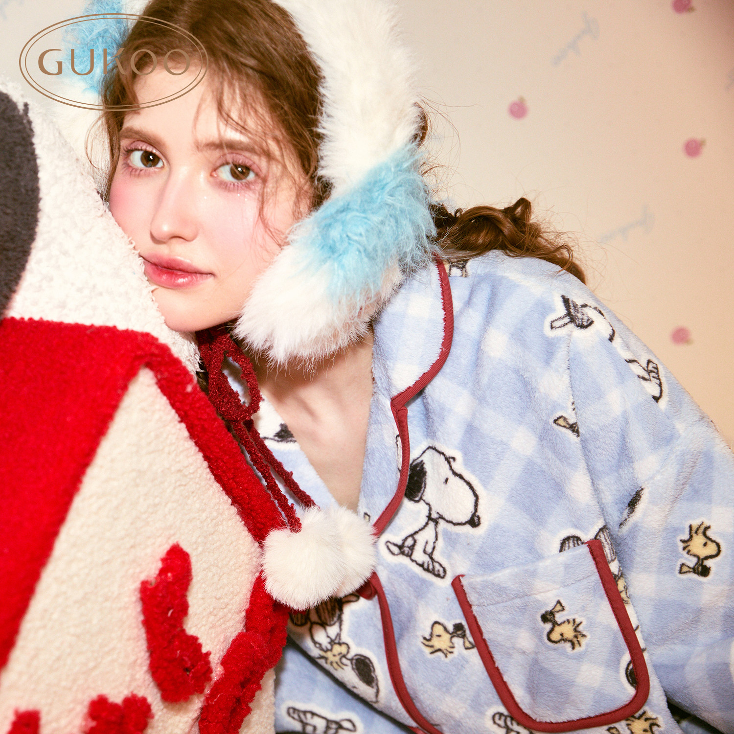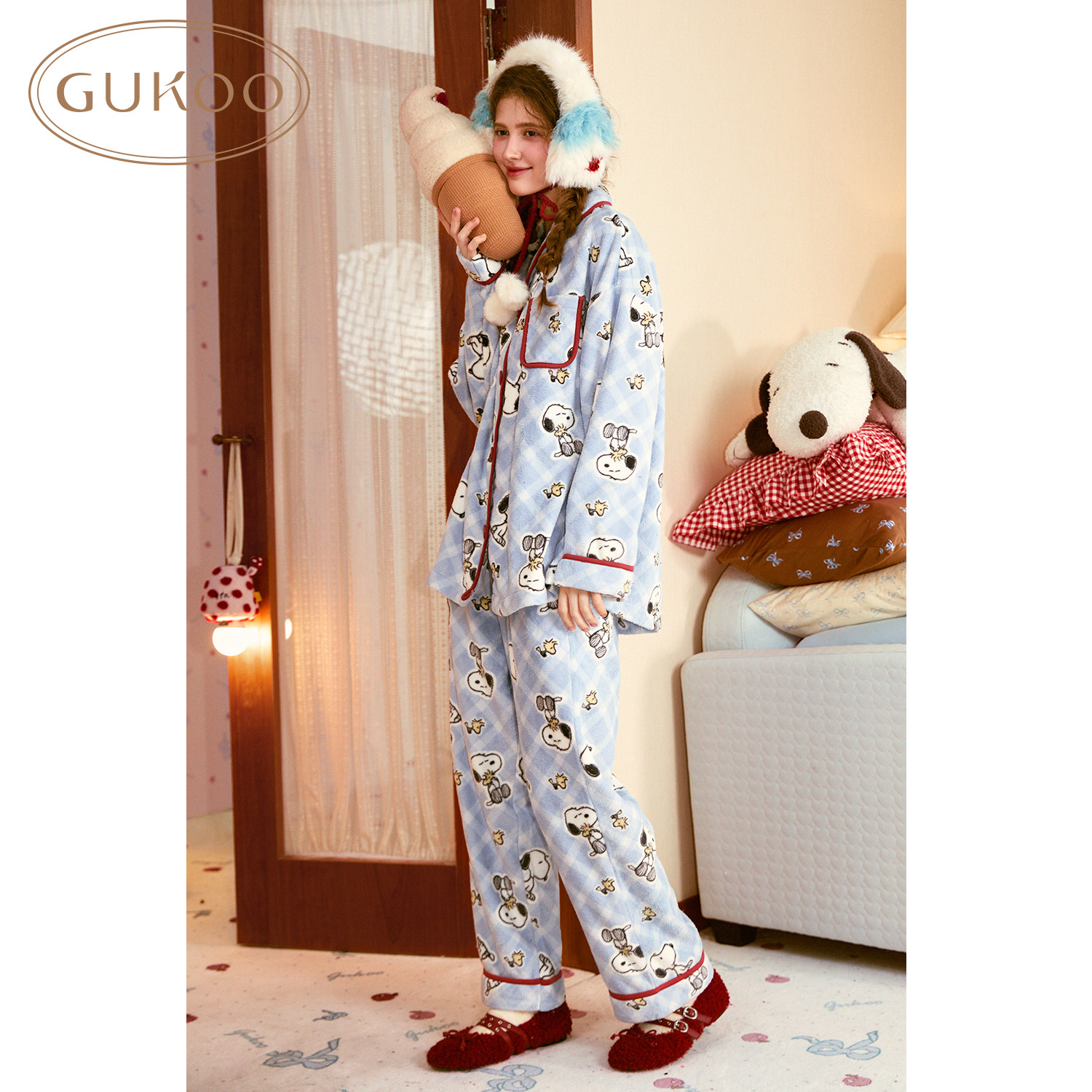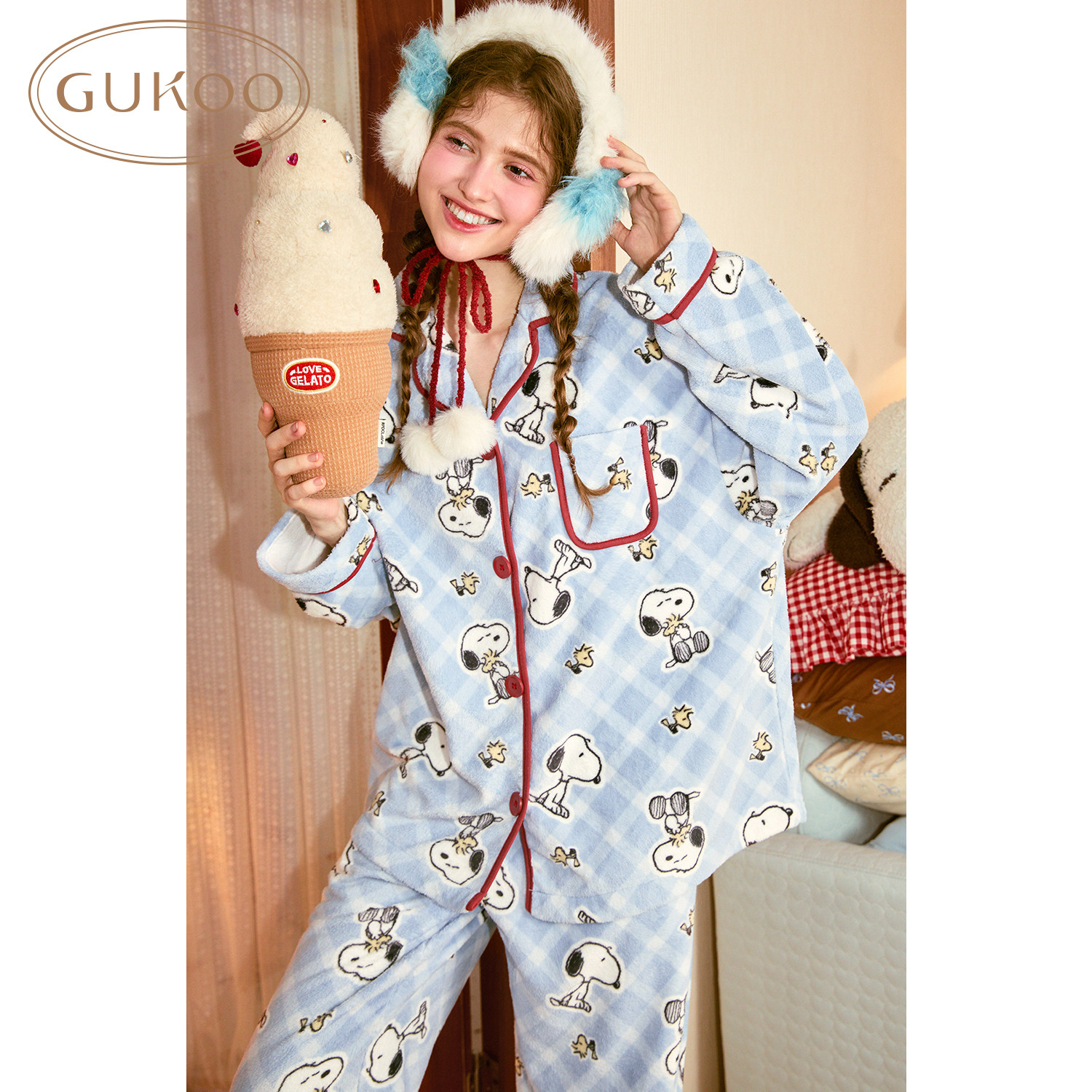 Gukoo/果壳史努比卡通家居服女冬季毛绒保暖可爱睡衣套装