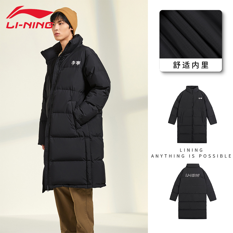 李宁长款羽绒服华晨宇同款男款冬季时尚保暖鸭绒加厚立领过膝开叉