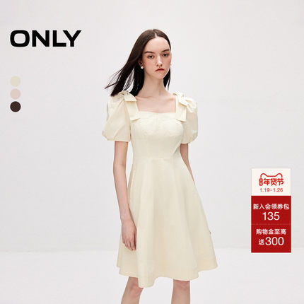 ONLY夏季甜美学院显瘦收腰短裙泡泡袖连衣裙女|124207129