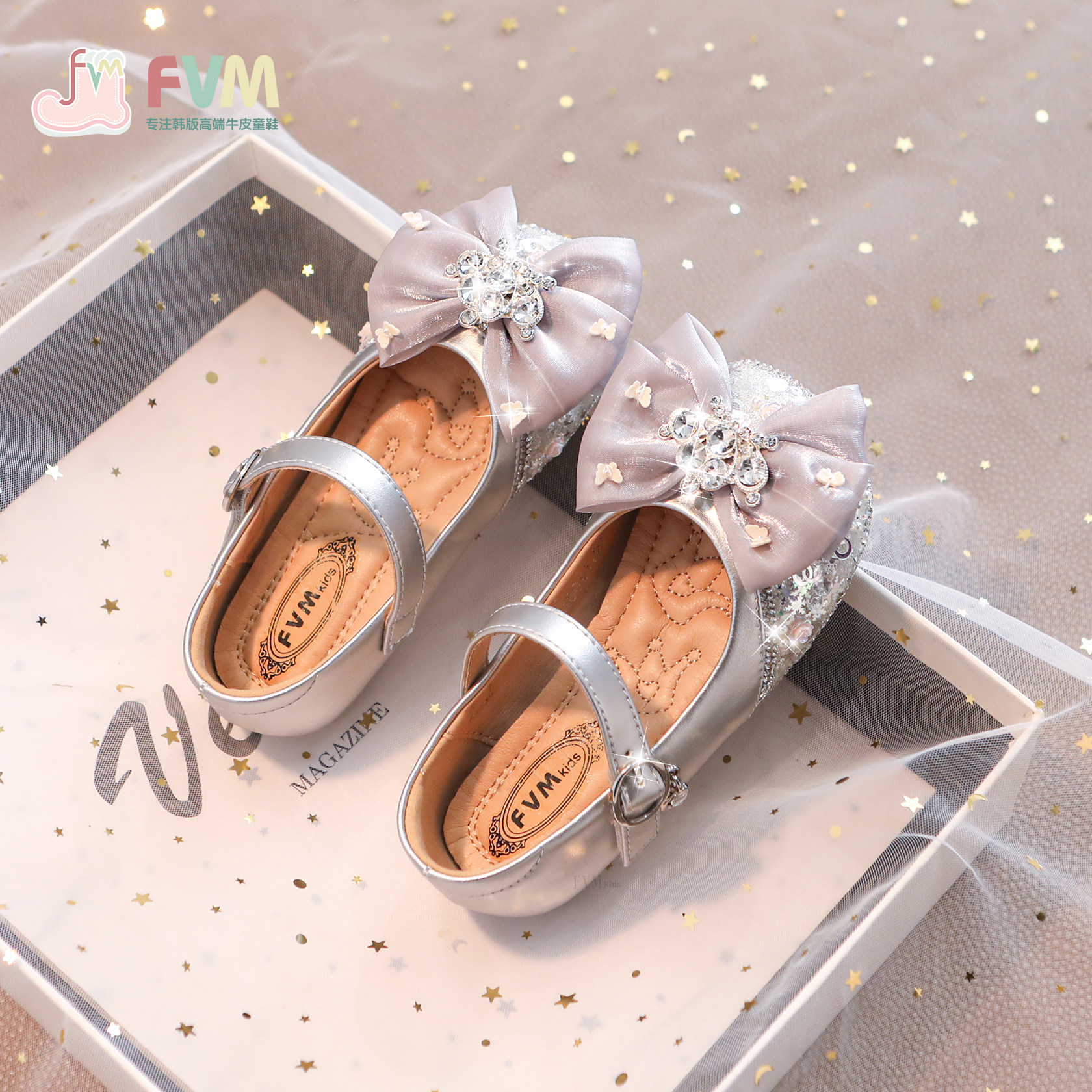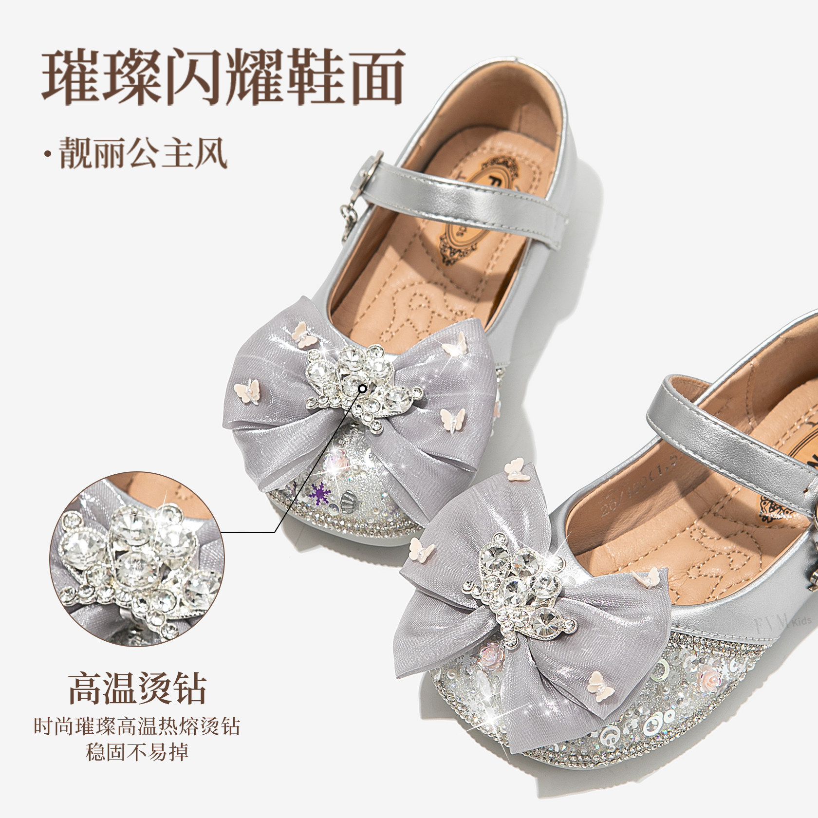 FVM女童鞋子儿童公主水晶小皮鞋2025春秋款新款春季软底爱莎单鞋