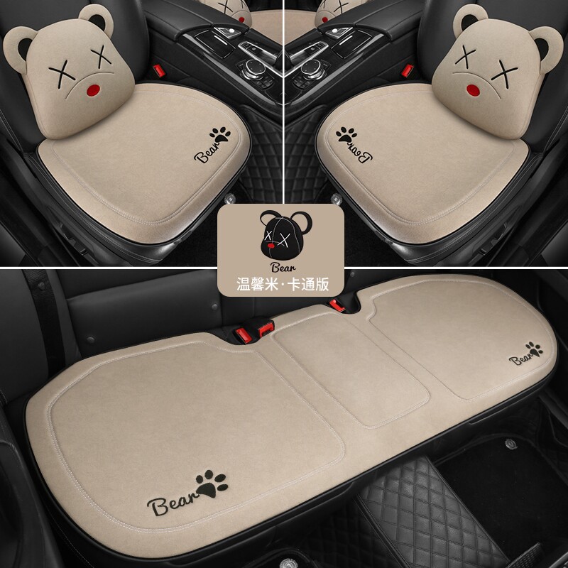 女神汽车坐垫单片四季通用棉麻布艺无靠背三件套后排车垫冬季座垫