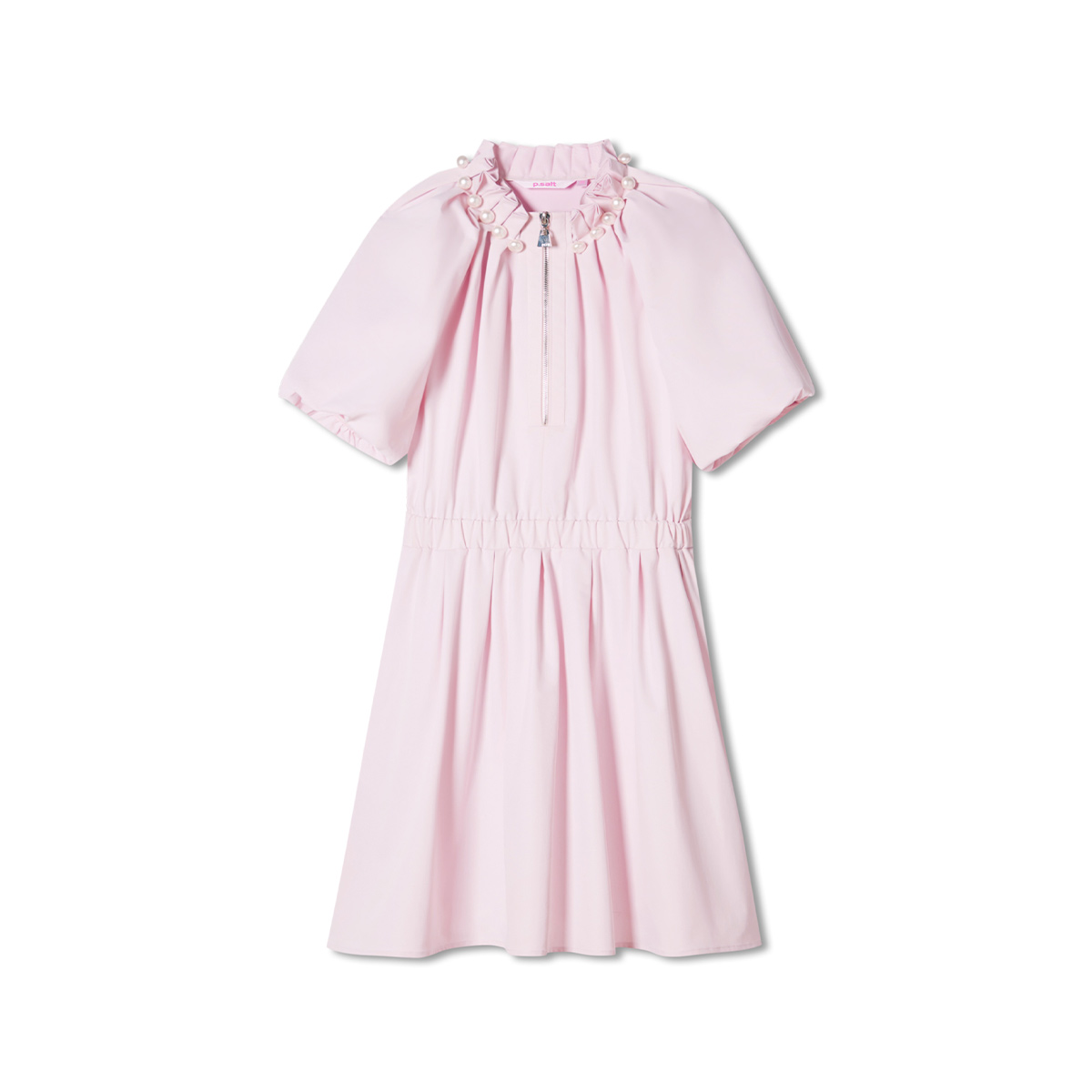 SALT.P可颜2024春夏甜美荷叶边领钉珠泡泡袖花苞裙连衣裙