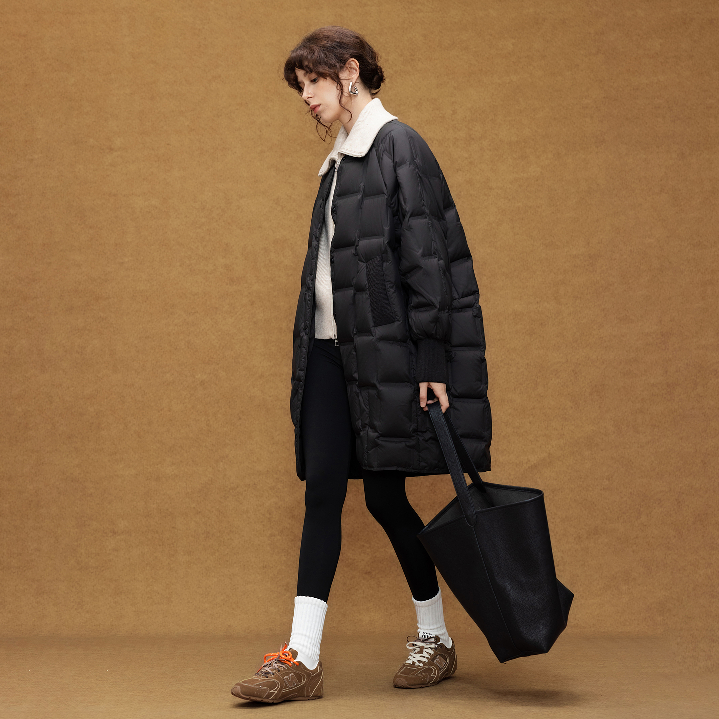 德玛纳轻暖90鸭绒中长款大码羽绒服女25冬季针织拼接简约保暖外套