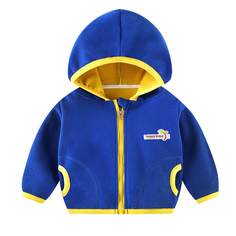 儿童抓绒外套摇粒绒男女孩加绒加厚上衣春秋季连帽卫衣宝宝拉链衫