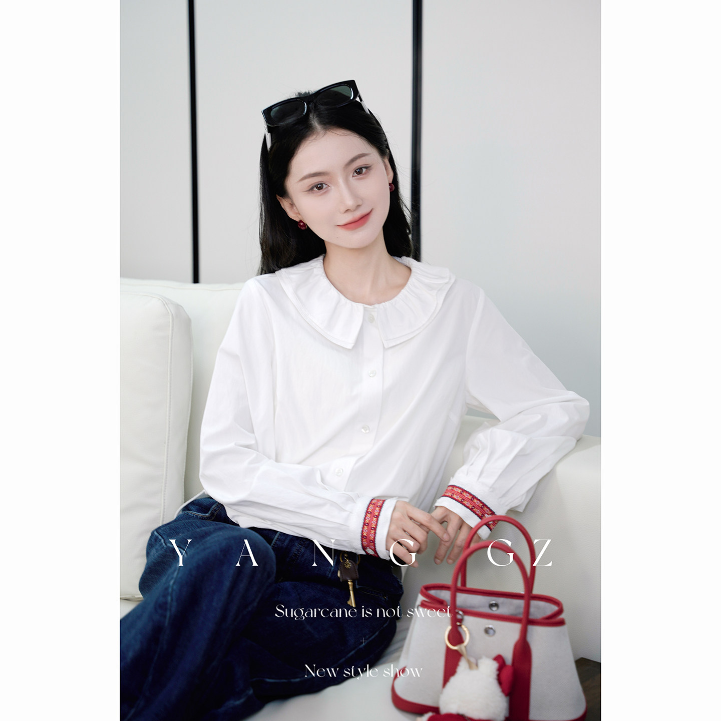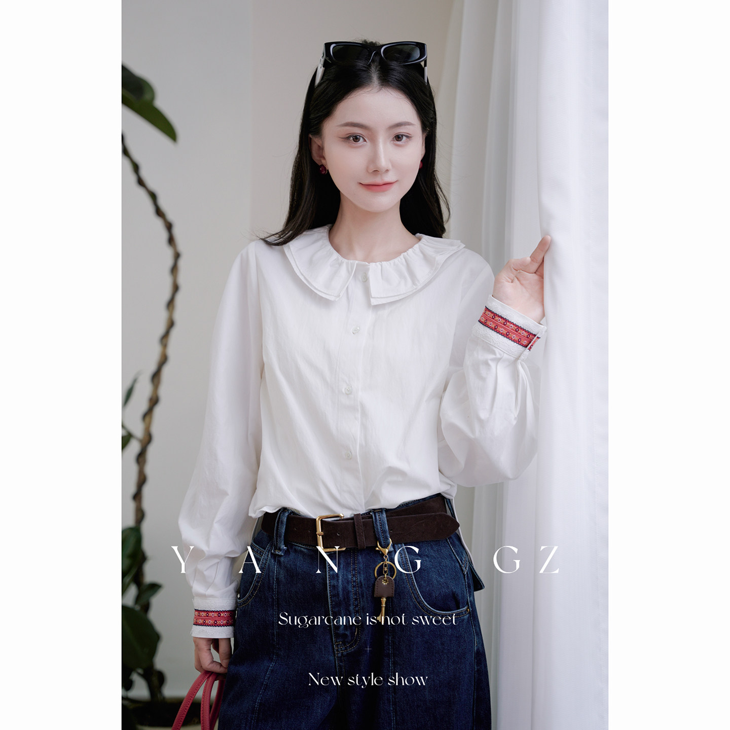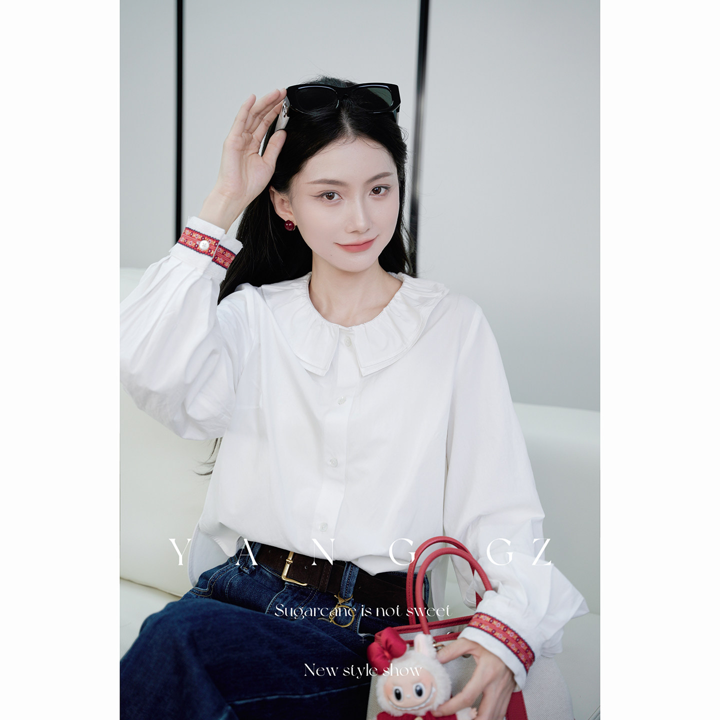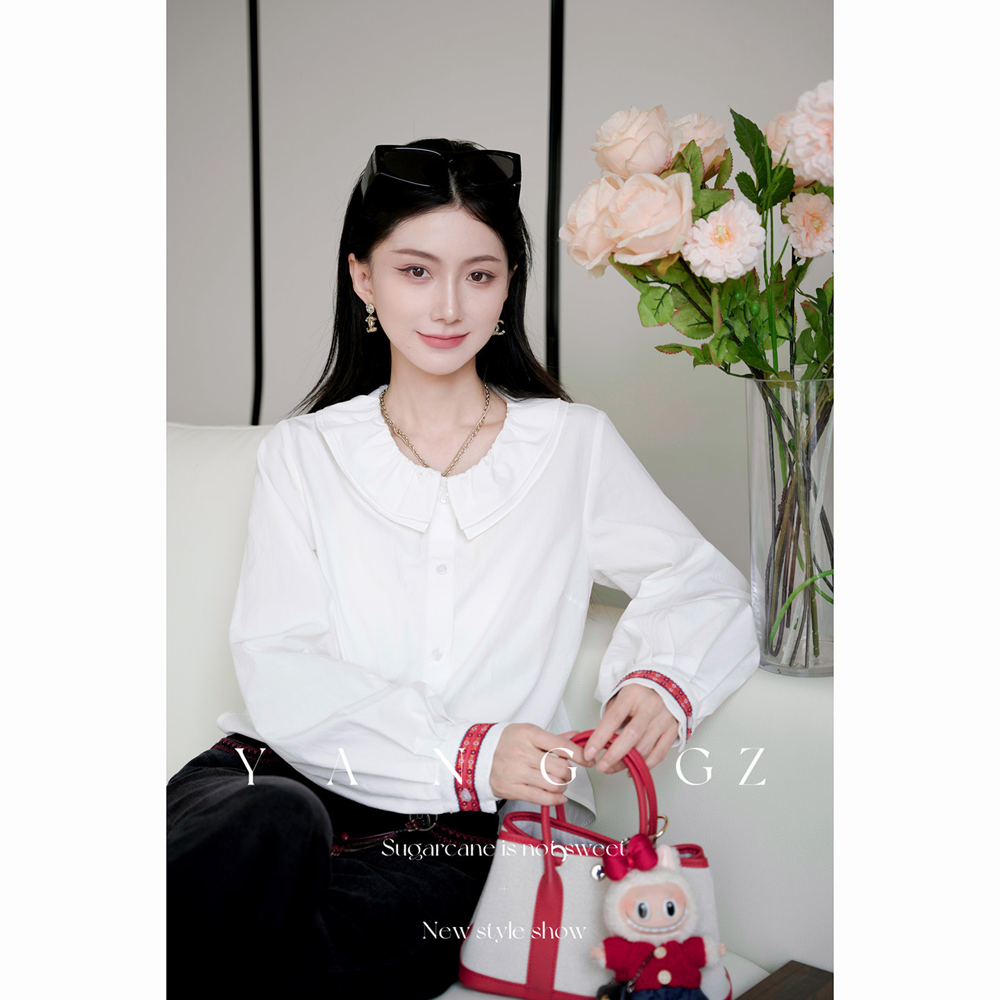 YANG GZ【唐顿庄园】新中式2025新款秋冬双层娃娃领衬衫上衣女