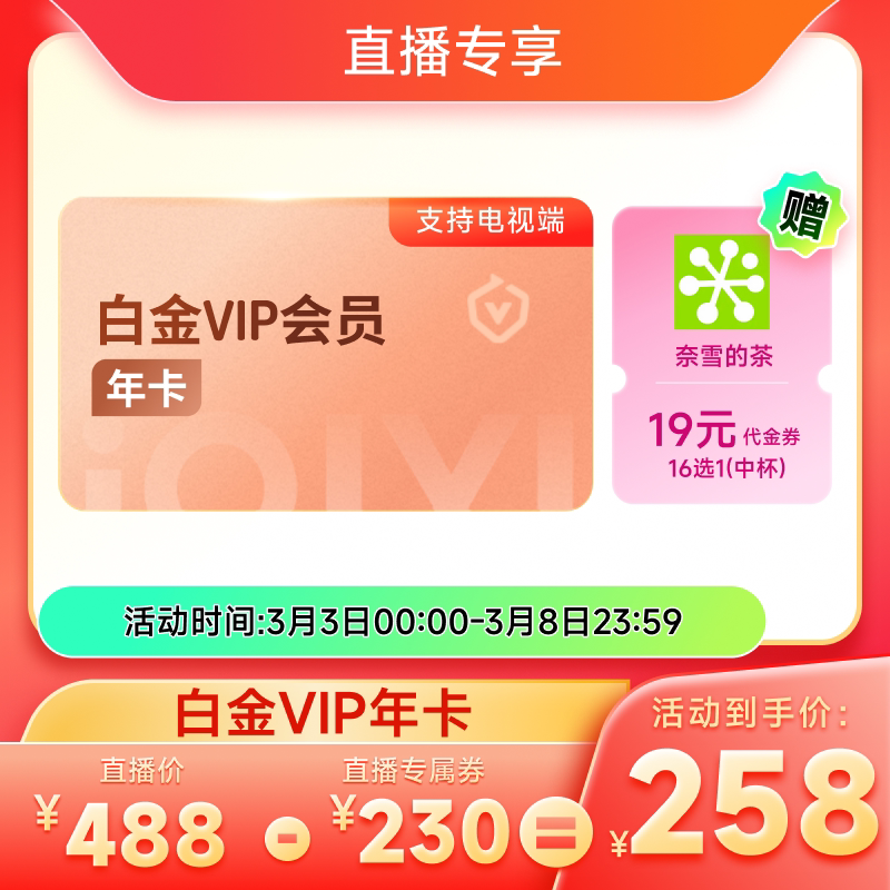 【支持电视】爱奇艺白金vip会员年卡 银河奇异果支持电视爱奇艺