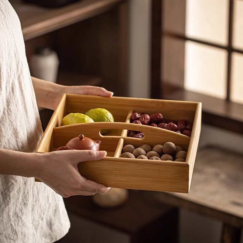 围炉煮茶九宫格果盘零食干果盘木质盘分格九宫格托盘火锅配菜拼盘