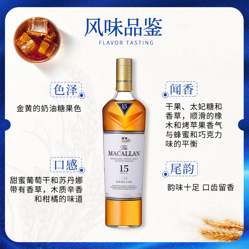MACALLAN麦卡伦蓝钻15年双桶700ML 苏格兰单一麦芽威士忌双雪梨桶
