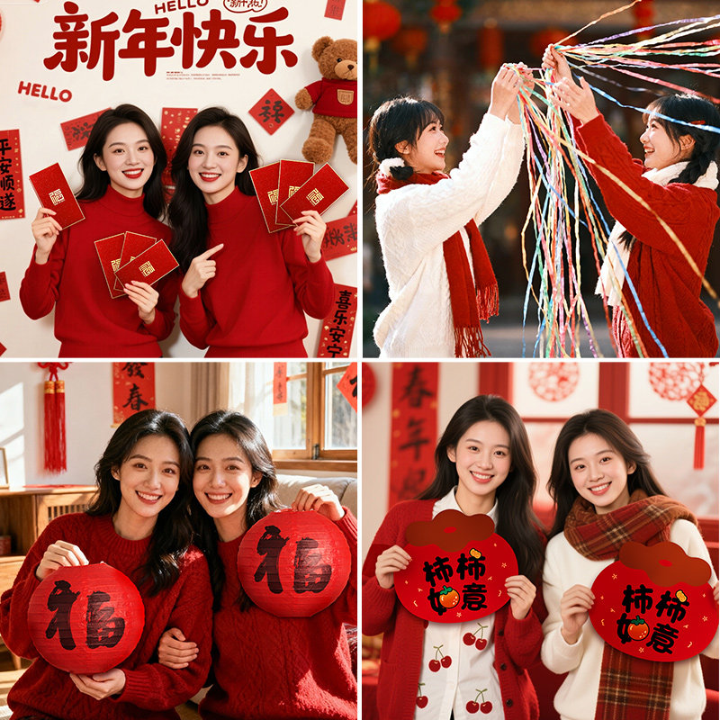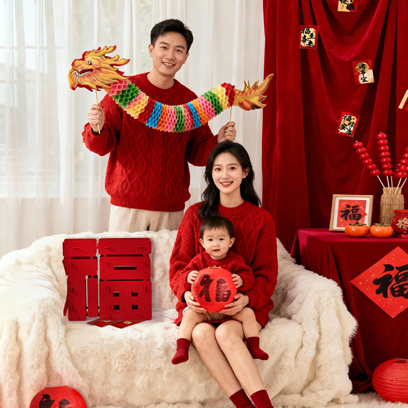 2026全家福亲子照开学拍照道具年会过年手持视频拍摄装饰氛围布置
