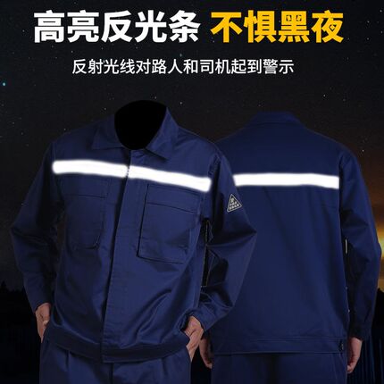 春秋加油站防静电反光条安全工作服套装男劳保服电工电力工装耐磨