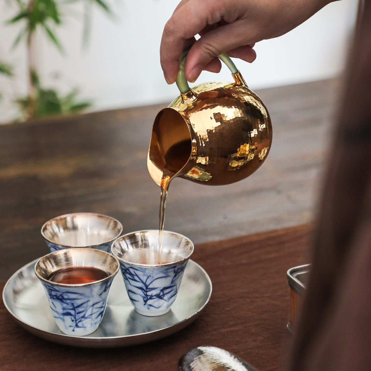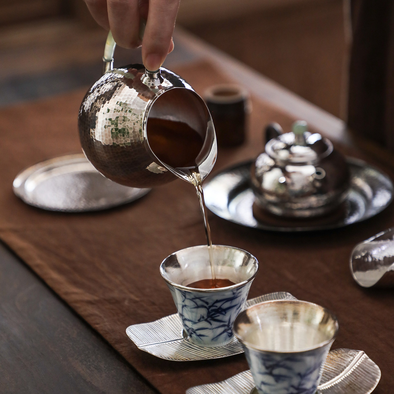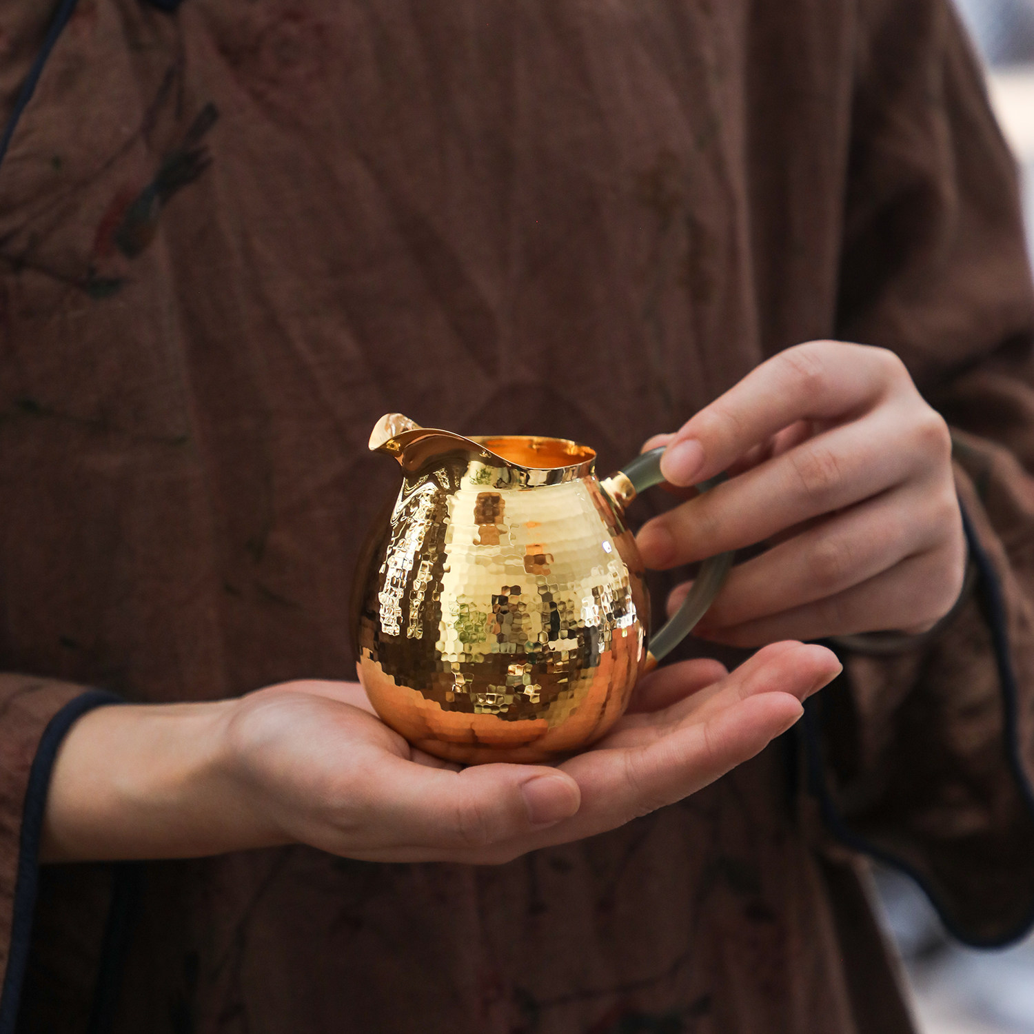 纯银时代纯手工锤目纹玉把匀杯