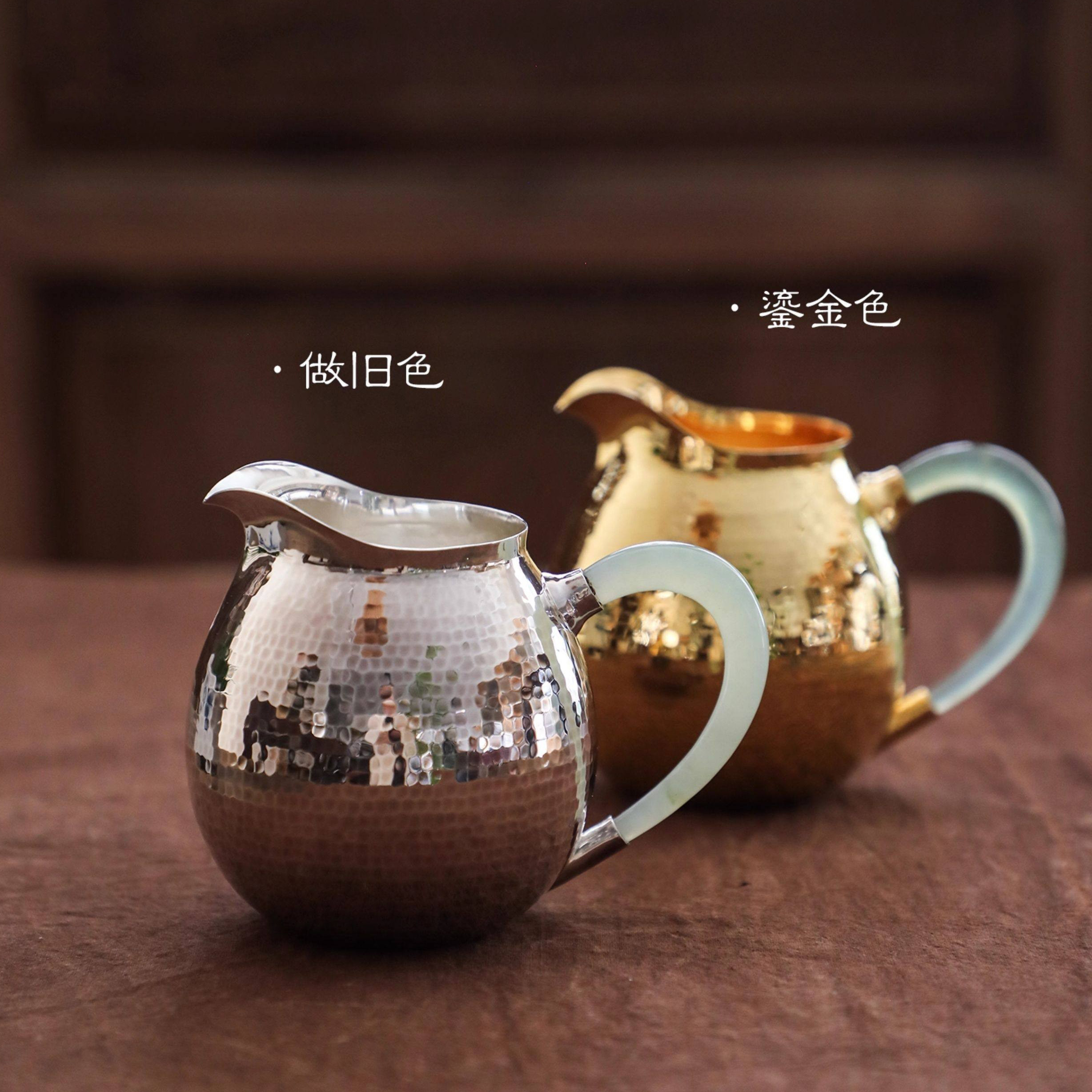 纯银时代 玉把公道杯足银999纯手工分茶器匀杯锤纹精致日式250ml