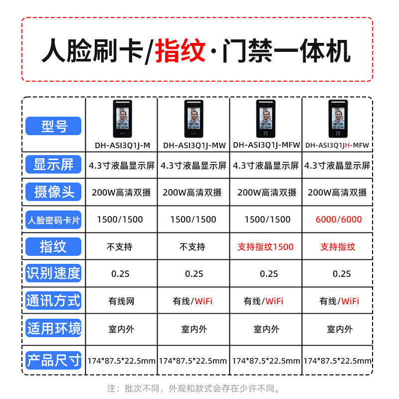 大华DH-ASI3Q1JH-MFW人脸门禁一体机4.3寸办公远程指纹考勤机WiFi