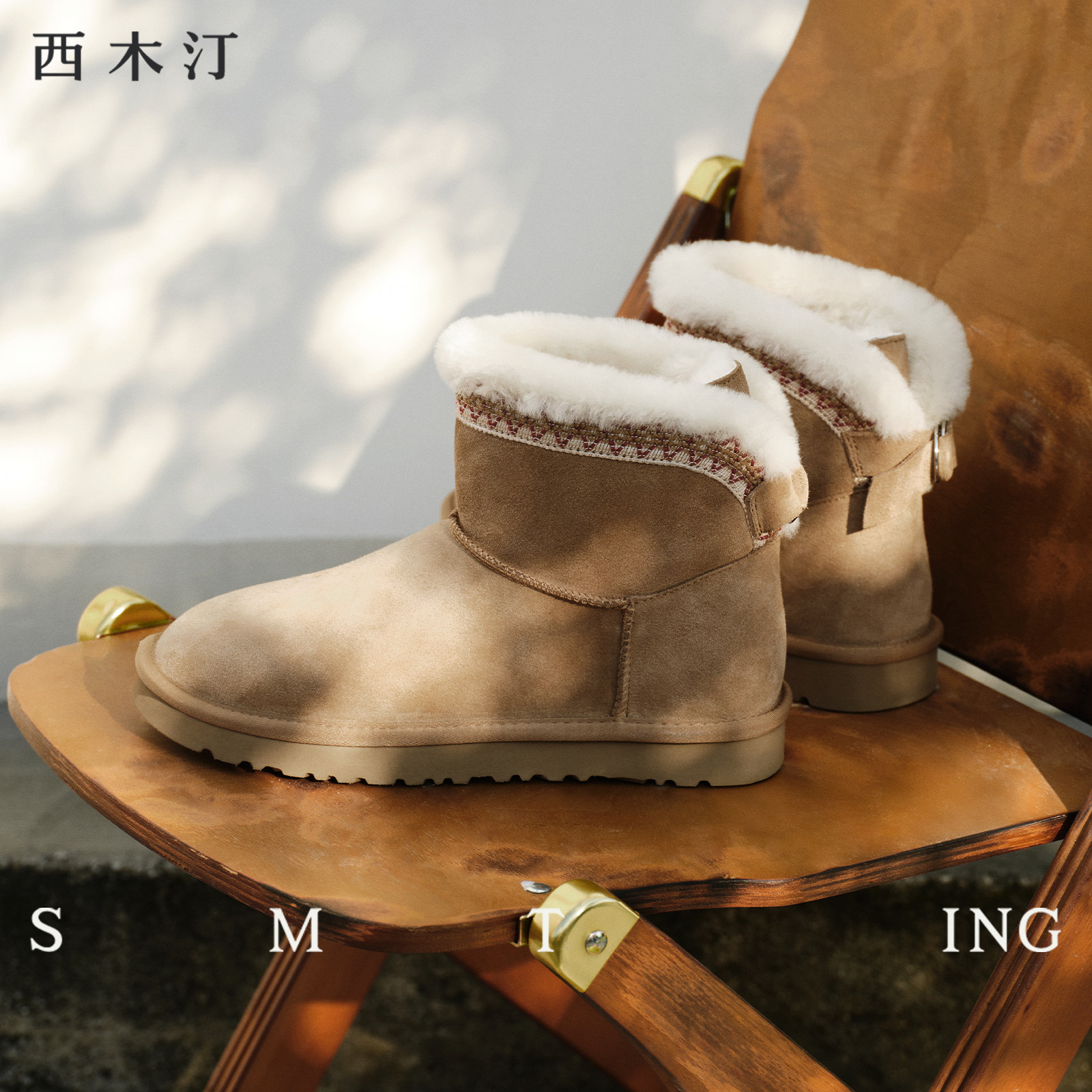 西木汀短筒雪地靴冬季女鞋加绒2025新款短靴保暖慵懒松弛感短鞋