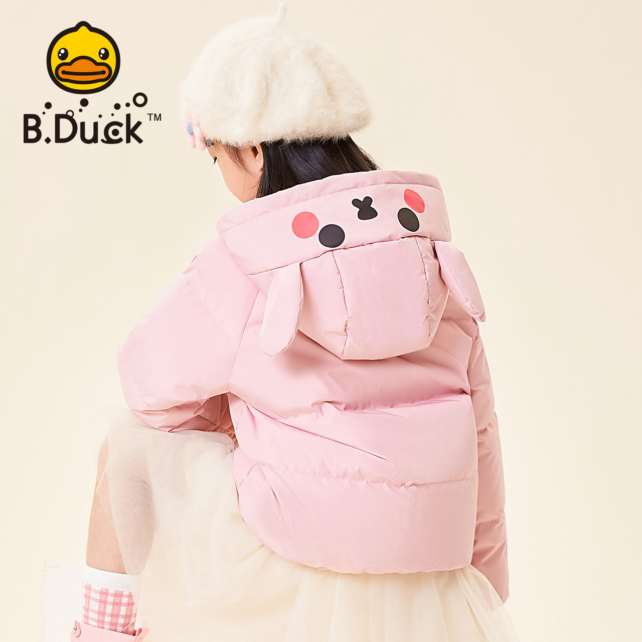 bduck小黄鸭童装女童羽绒服冬季儿童短款外套女孩加厚白鸭绒上衣