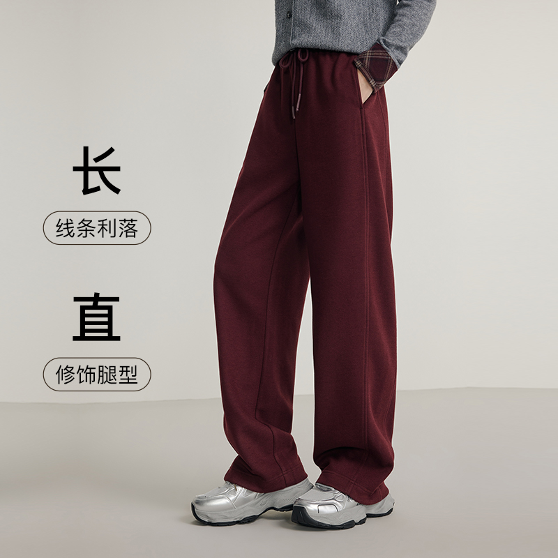 红色高腰加厚绒感直筒裤休闲裤KBNE春秋新款长裤气质阔腿裤女裤