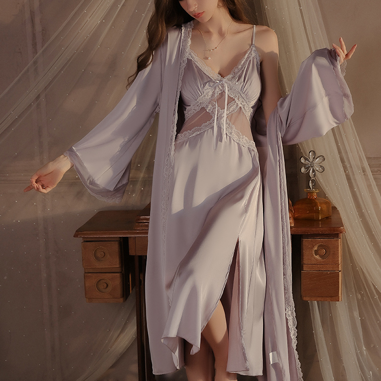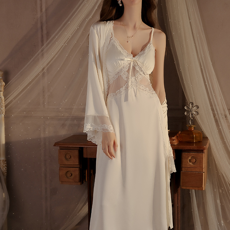 法式宫廷风吊带睡裙长款秋冬睡衣