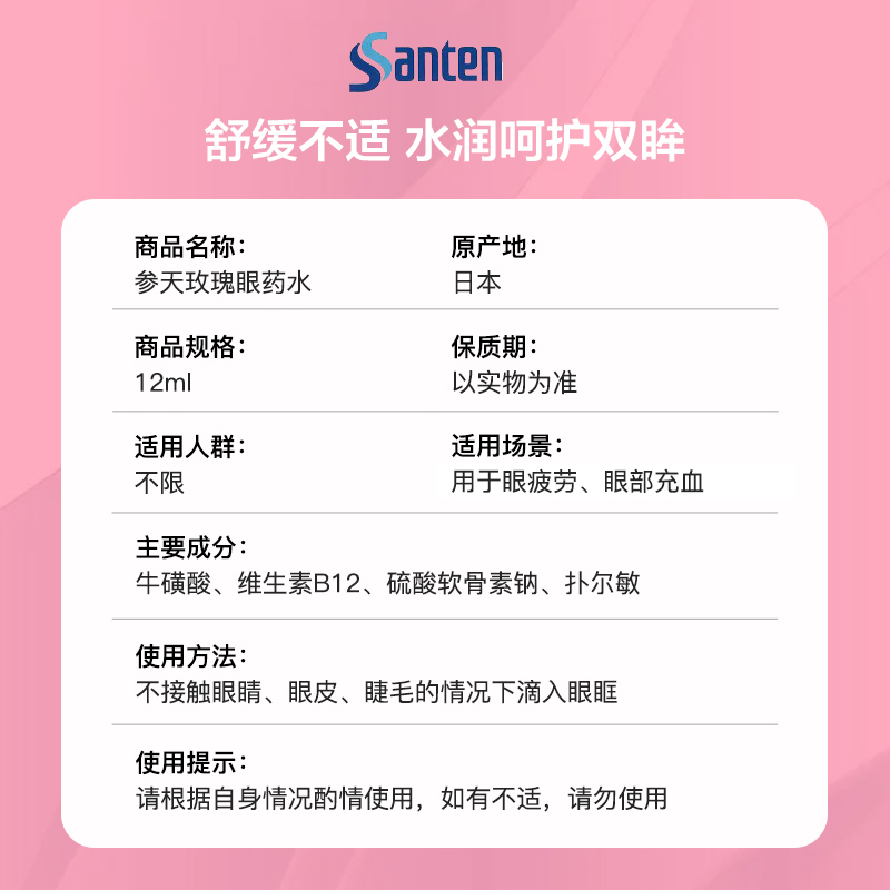【自营】日本参天Beautyeye玫瑰眼药水12ml滴眼液润眼液缓解眼疲