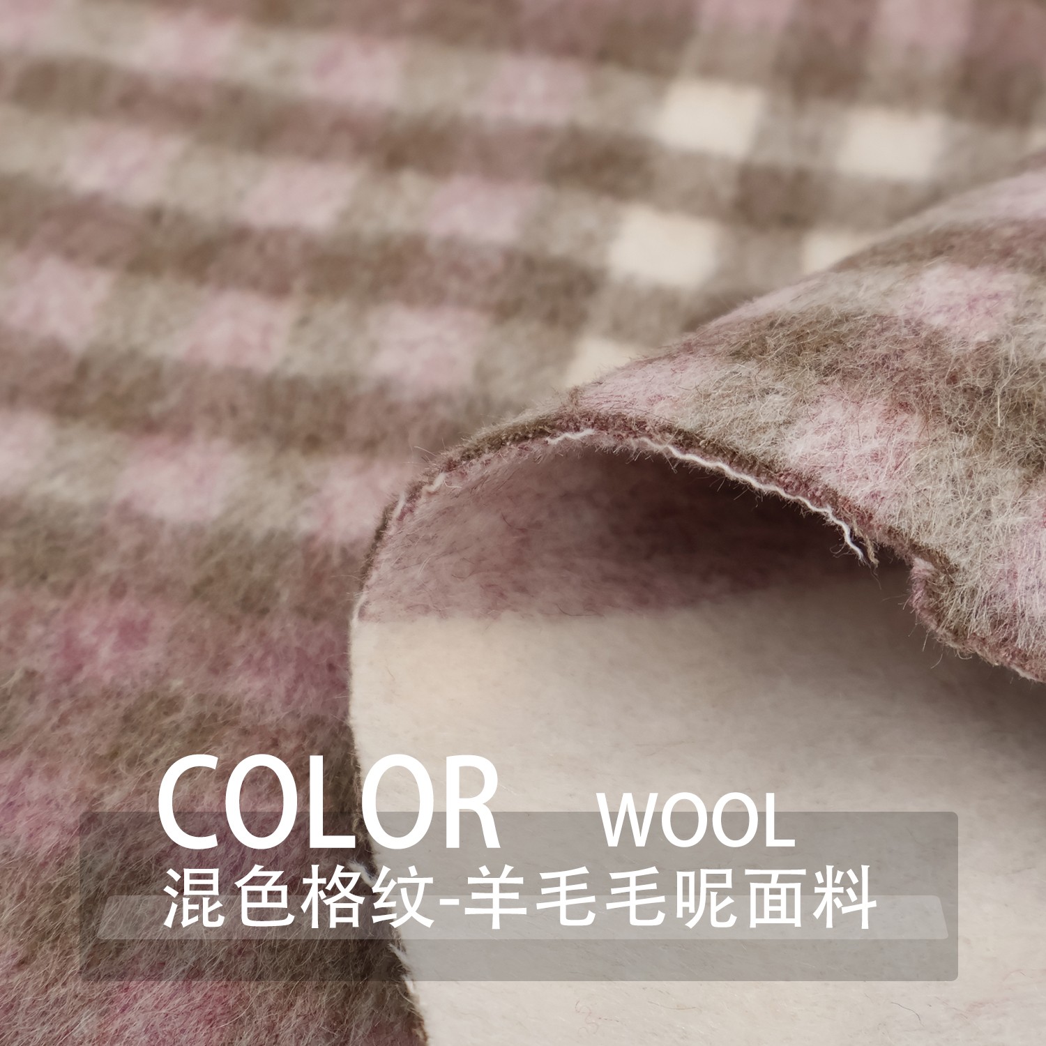 高端进口美利奴双面顺毛羊毛羊绒格子毛呢格子布料大衣衣服面料C