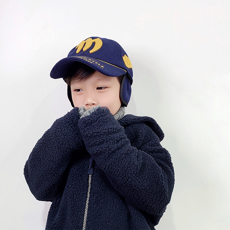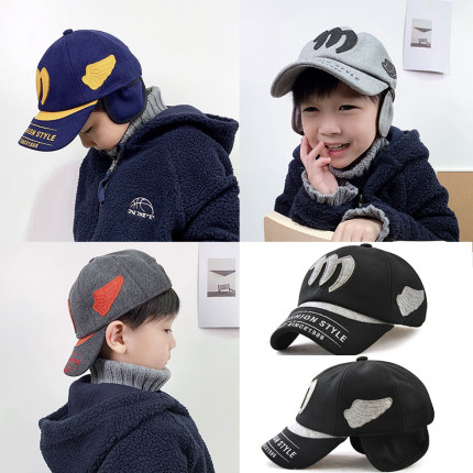儿童帽子男 潮秋冬男童毛呢加绒护耳帽宝宝鸭舌帽保暖棒球帽韩版