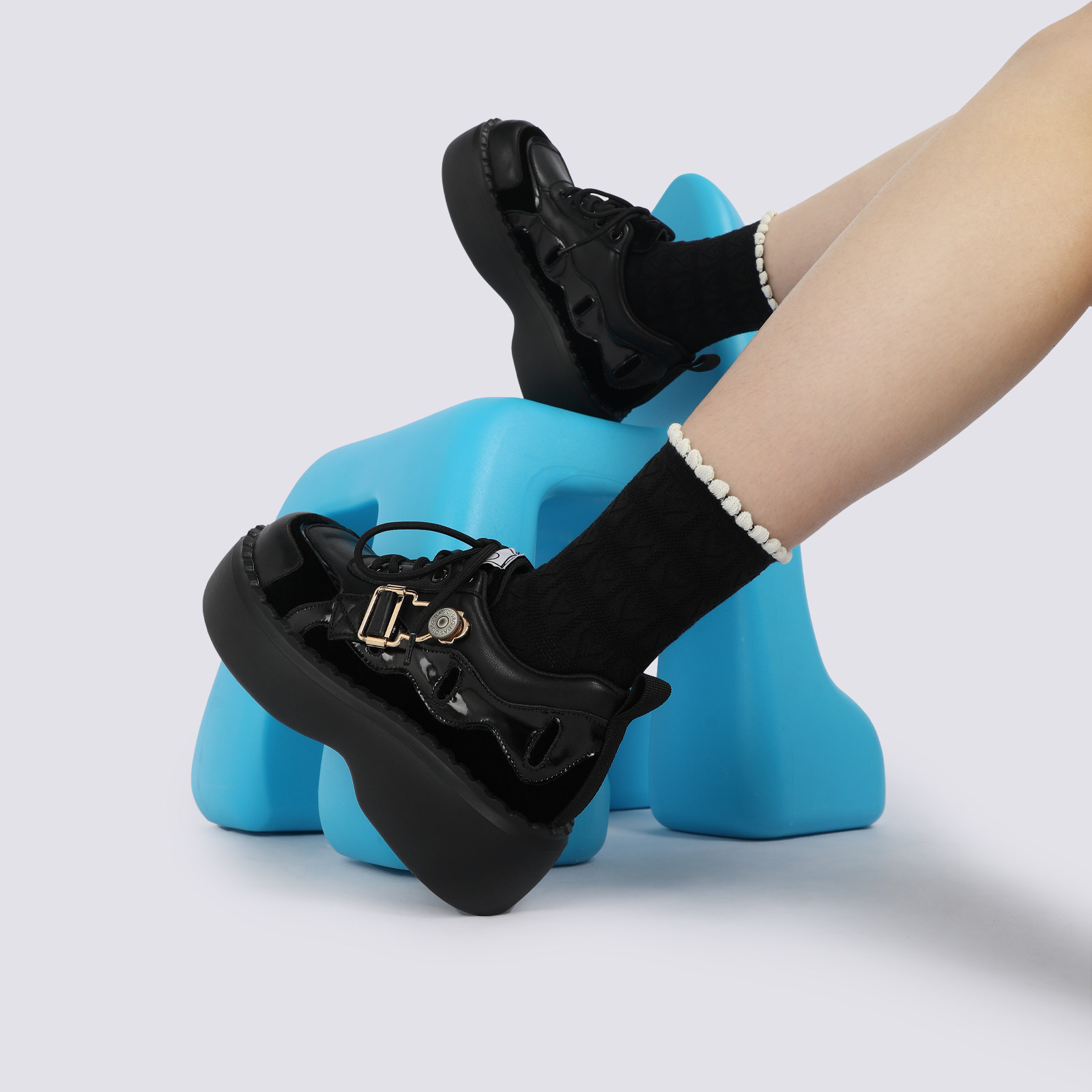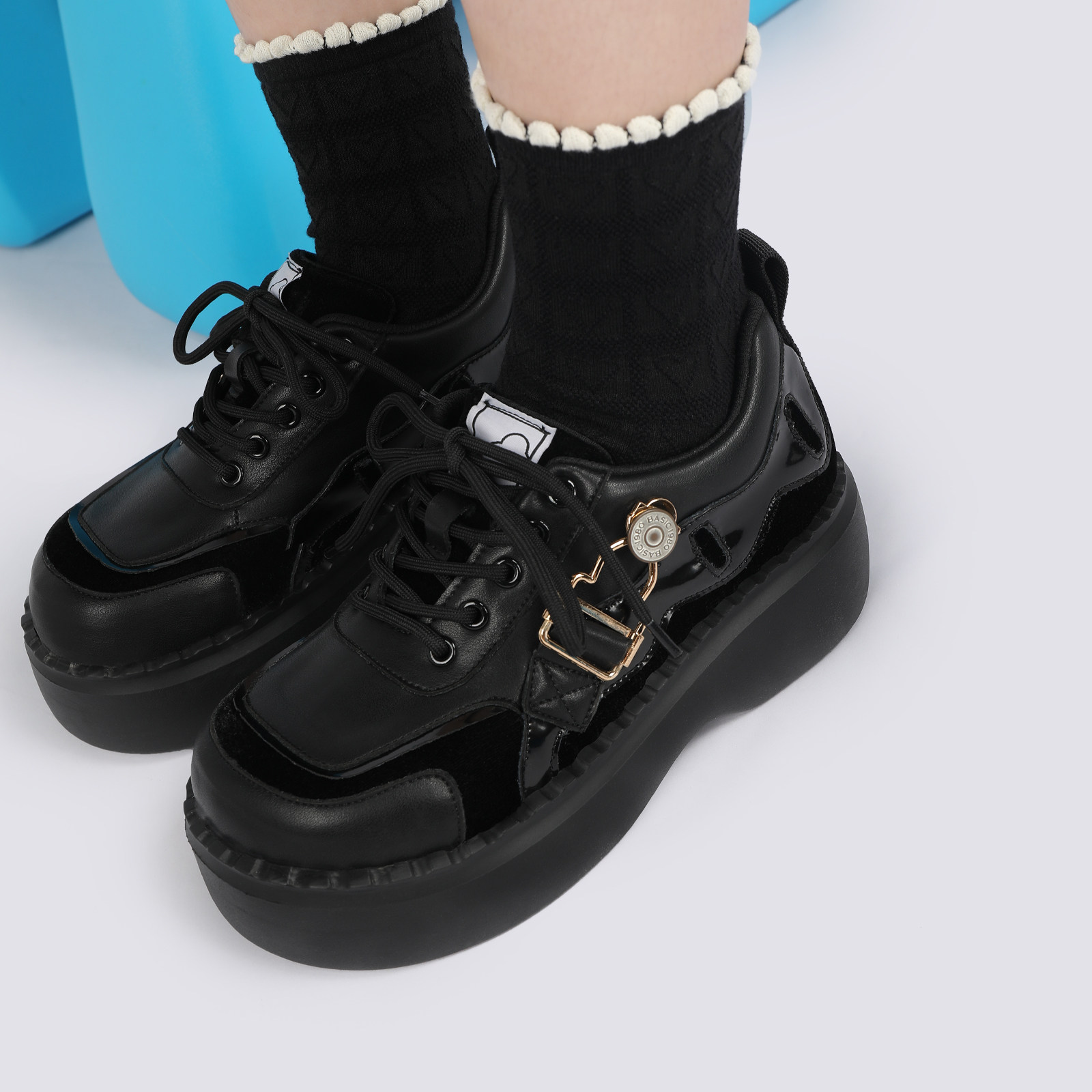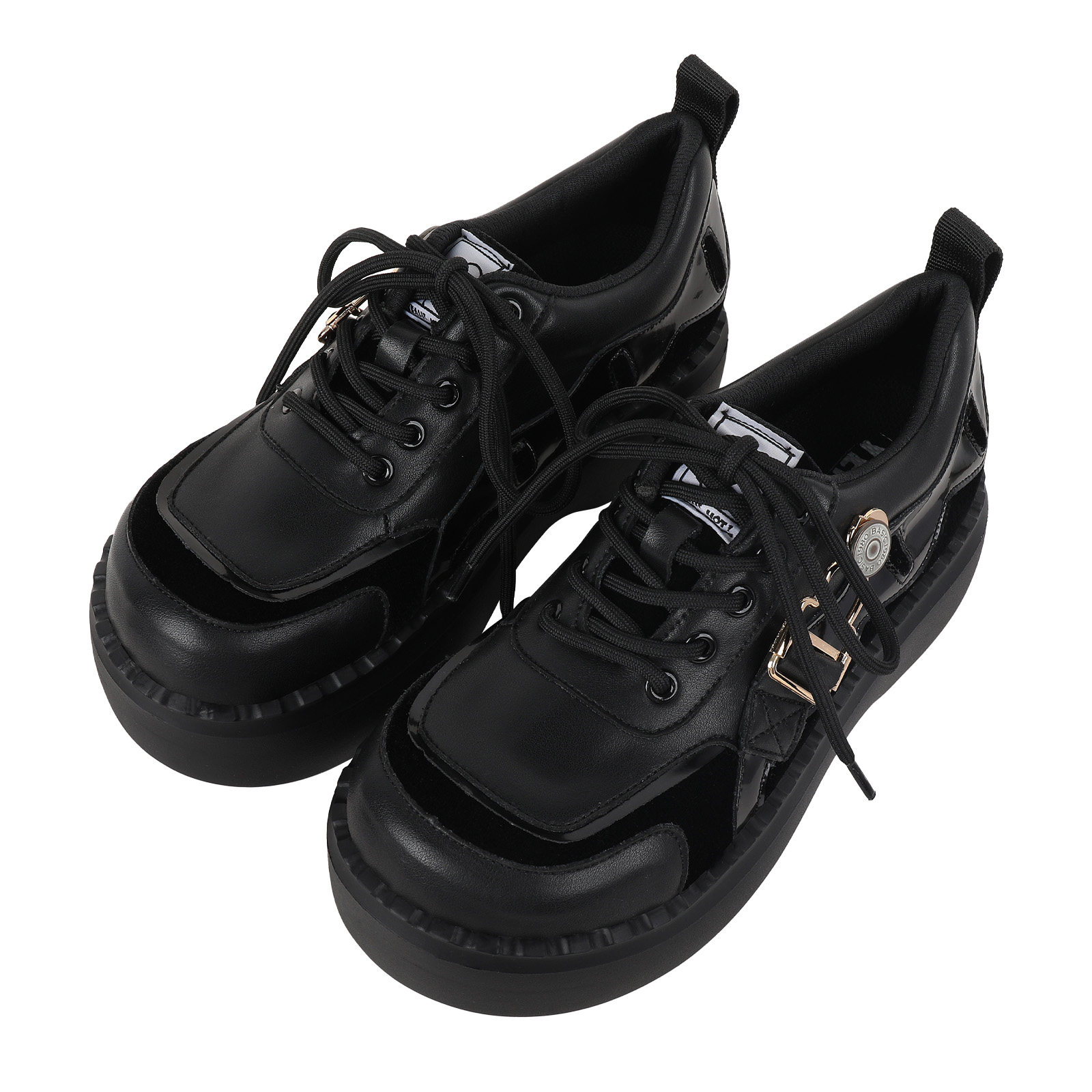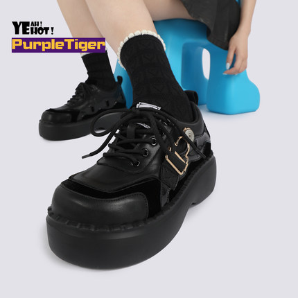 Purple Tiger新品日系厚底小皮鞋学院风金属扣增高百搭女鞋单鞋
