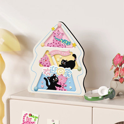 丙烯卡通猫咪数字油画玄关装饰画