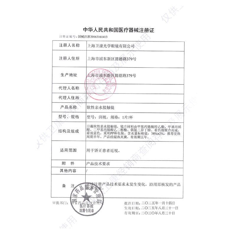 卫康隐形近视眼镜半年抛1 水感透明片半年6月抛正品非美瞳非日抛