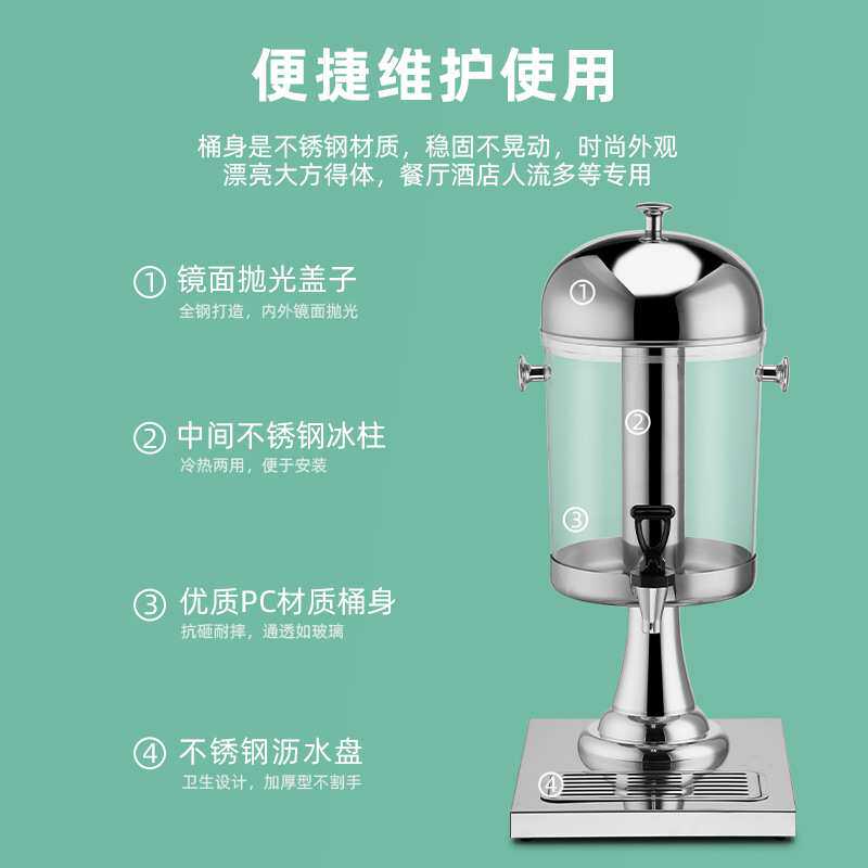 酒店不锈钢果汁鼎西餐单头双头三头8L商用果汁桶饮料机自助冷饮机