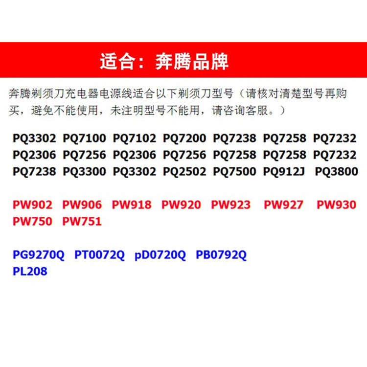 奔腾剃须刀充电器电源线 通用 PW927 PW930 PW750 PW751 PL208