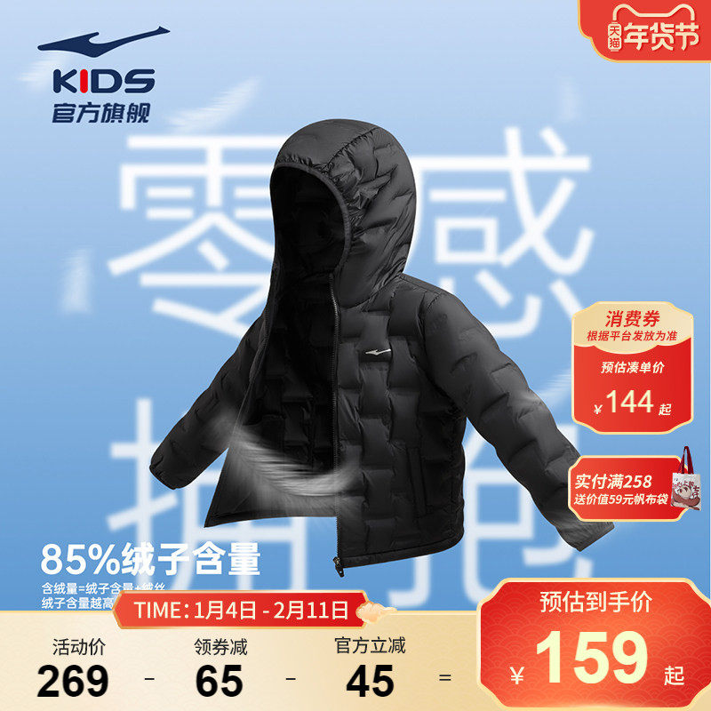 鸿星尔克童装儿童羽绒服秋冬季男童轻薄保暖连帽运动休闲羽绒外套