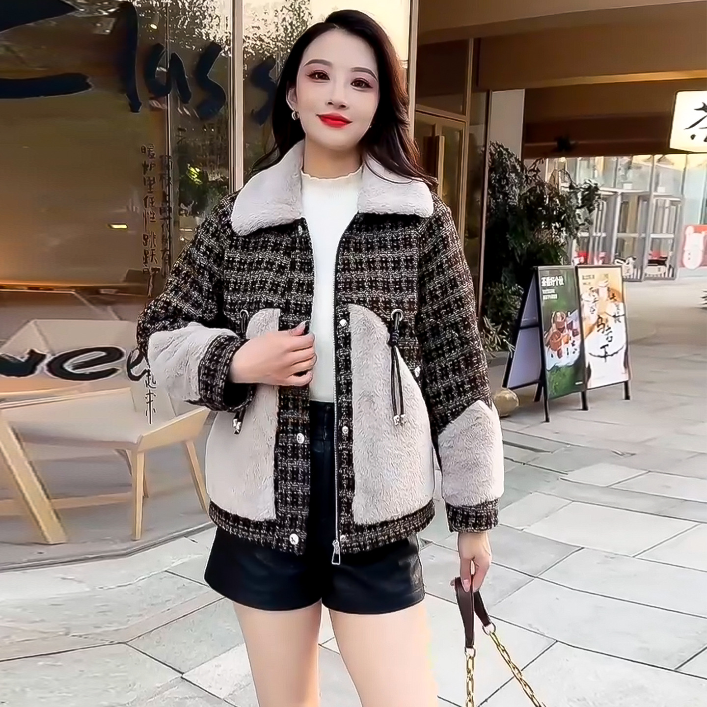 2025中青年女装秋冬新款格子马海毛短款毛呢外套中年妈妈装小个子
