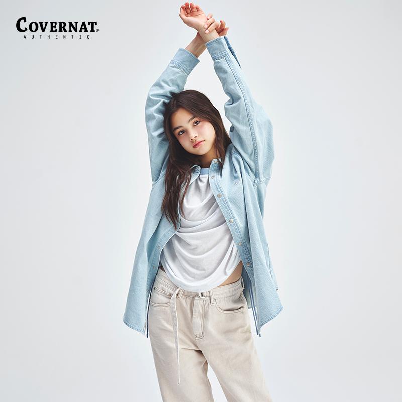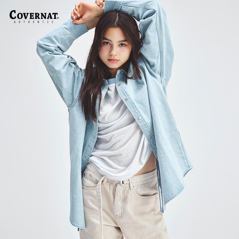 Covernat韩国潮牌牛仔衬衫长袖上衣纯棉休闲男女情侣时尚宽松百搭