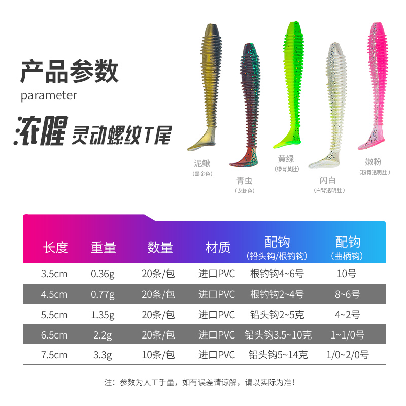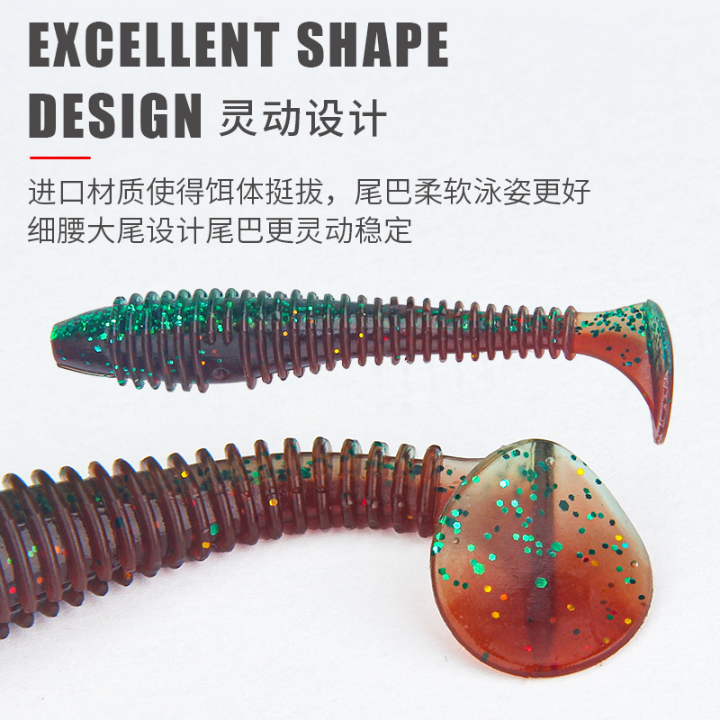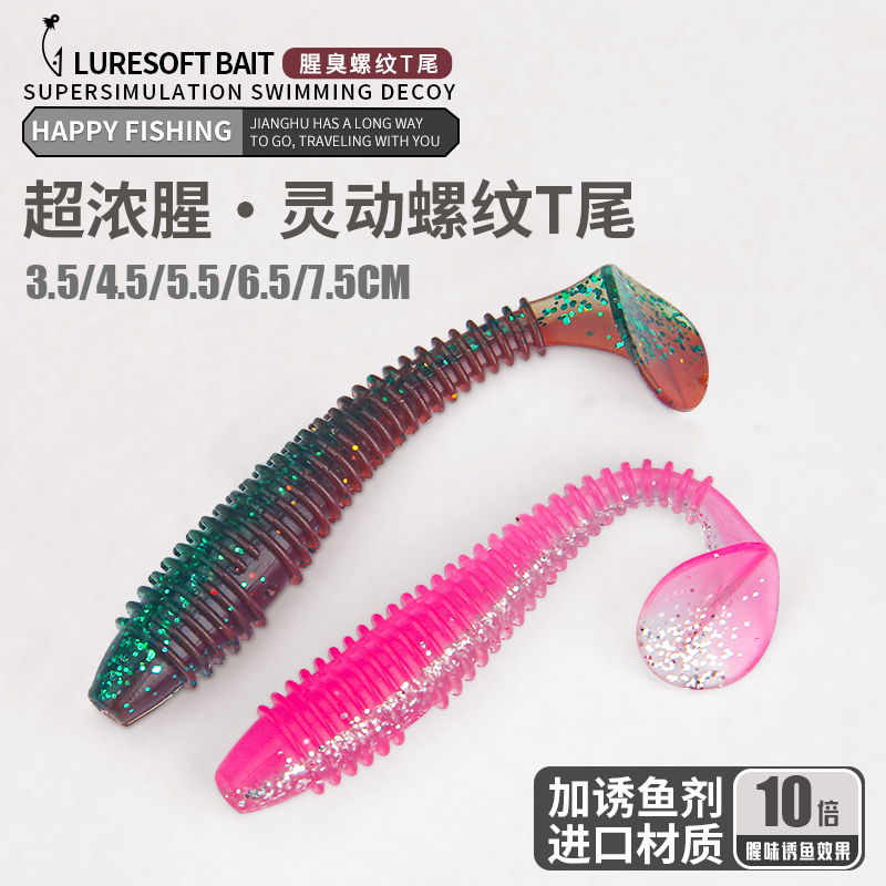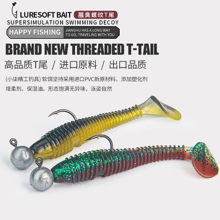螺纹T尾软饵铅头钩倒钓德州鲈鳜鱼翘嘴螺旋软虫黑坑竞技路亚假饵