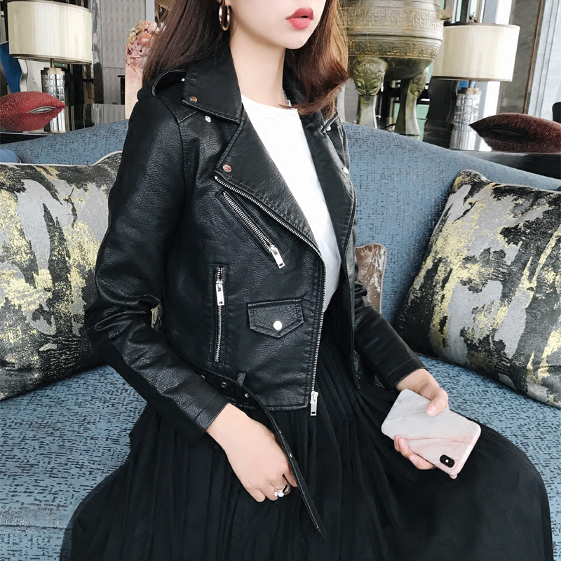 春秋新款皮衣外套女短款机车服高级感pu皮夹克服酒红色小个子外套