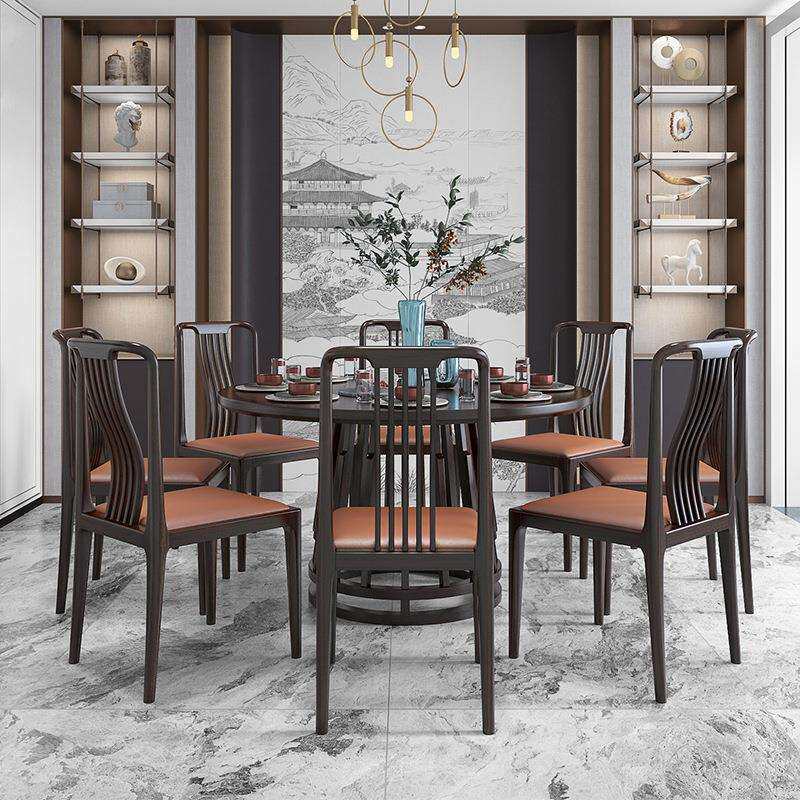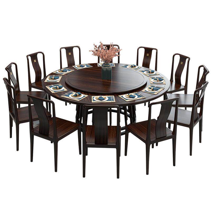 新中式别墅实木餐桌椅组合酒店私人包厢成套大圆桌10人带转盘家具